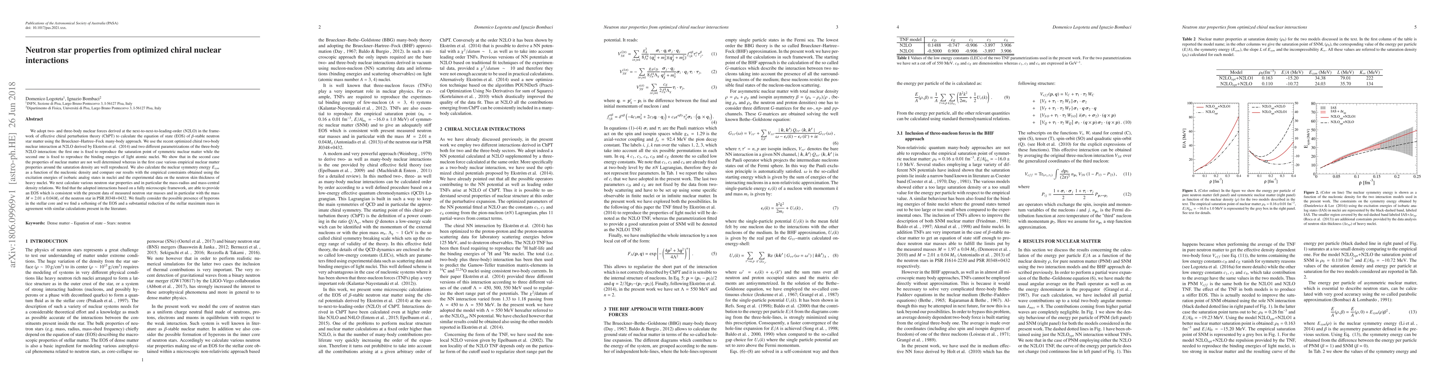 Researchers used optimized chiral nuclear interactions to calculate neutron star properties, finding a consistent mass-radius relation with current data and predicting a possible presence of hyperons in the stellar core.