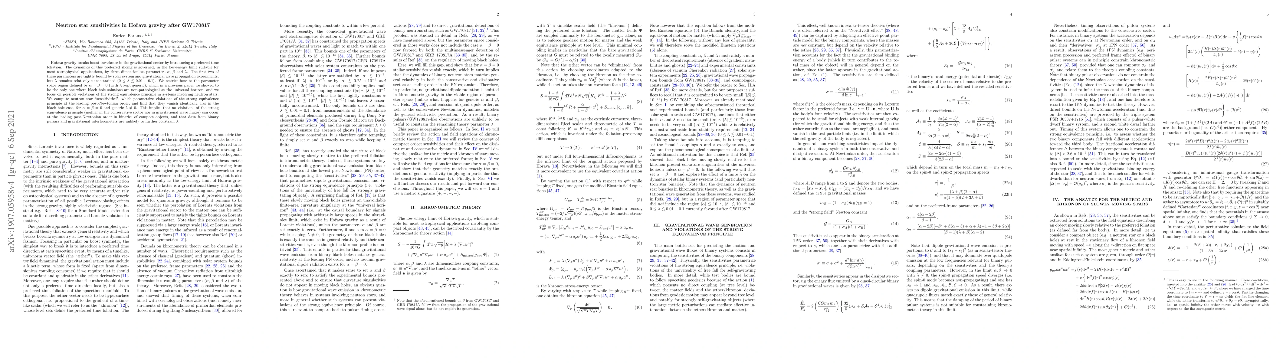 A study on Hoçrava gravity finds no violations of the strong equivalence principle in neutron stars within the current parameter range, limiting potential constraints on the theory.