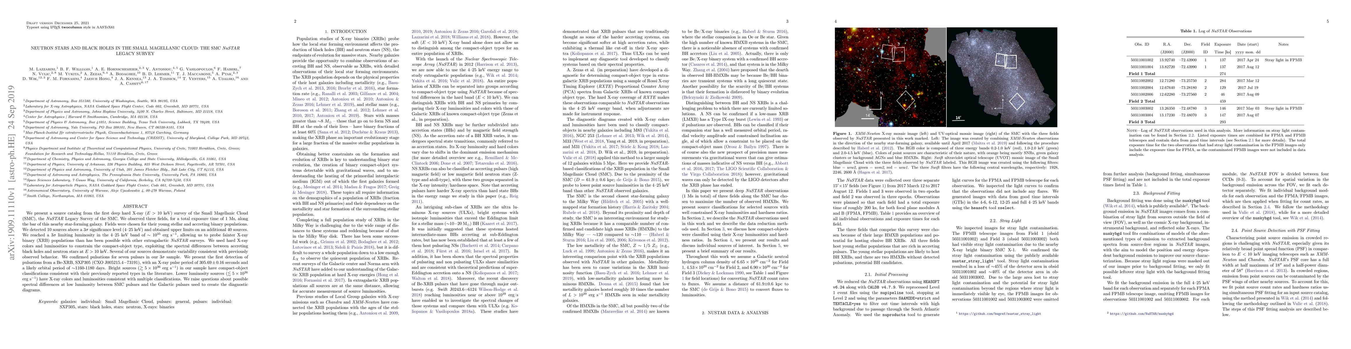 We present a source catalog from the first deep hard X-ray ($E>10$ keV) survey of the Small Magellanic Cloud (SMC), the NuSTAR Legacy Survey of the SMC. We observed three fields, for a total exposure time of 1 Ms, along the bar of this nearby star-forming galaxy. Fields were chosen for their young stellar and accreting binary populations. We detected 10 sources above a 3$\sigma$ significance level (4$-$25 keV) and obtained upper limits on an additional 40 sources. We reached a 3$\sigma$ limiting luminosity in the 4$-$25 keV band of $\sim$ $10^{35}$ erg s$^{-1}$, allowing us to probe fainter X-ray binary (XRB) populations than has been possible with other extragalactic NuSTAR surveys. We used hard X-ray colors and luminosities to constrain the compact-object type, exploiting the spectral differences between accreting black holes and neutron stars at $E>10$ keV. Several of our sources demonstrate variability consistent with previously observed behavior. We confirmed pulsations for seven pulsars in our 3$\sigma$ sample. We present the first detection of pulsations from a Be-XRB, SXP305 (CXO J005215.4$-$73191), with an X-ray pulse period of $305.69\pm0.16$ seconds and a likely orbital period of $\sim$1160-1180 days. Bright sources ($\gtrsim 5\times 10^{36}$ erg s$^{-1}$) in our sample have compact-object classifications consistent with their previously reported types in the literature. Lower luminosity sources ($\lesssim 5\times 10^{36}$ erg s$^{-1}$) have X-ray colors and luminosities consistent with multiple classifications. We raise questions about possible spectral differences at low luminosity between SMC pulsars and the Galactic pulsars used to create the diagnostic diagrams.