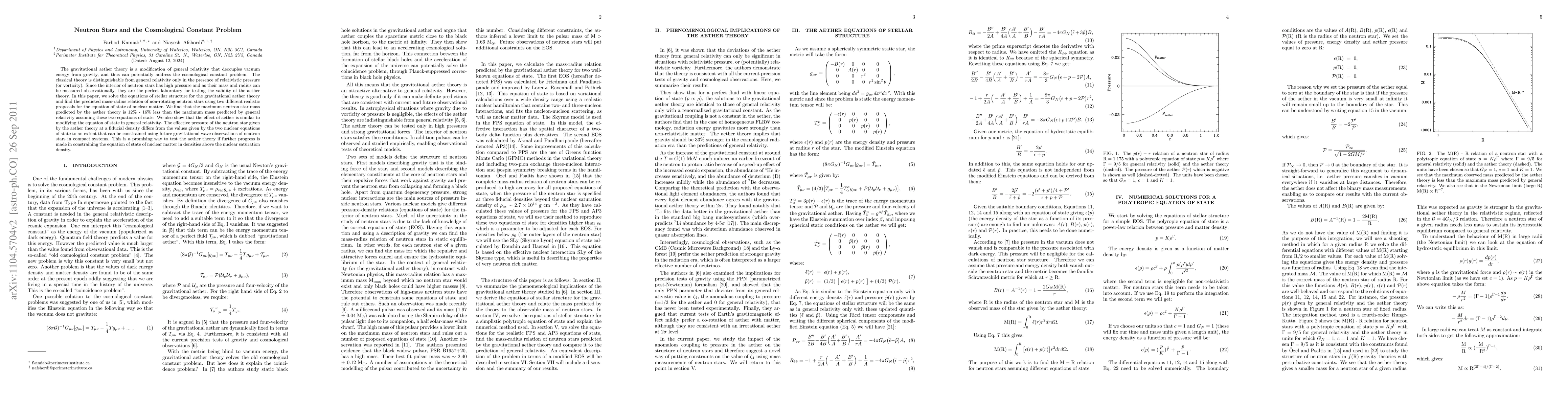 This paper explores the gravitational aether theory as a potential solution to the cosmological constant problem by examining neutron stars, which provide a unique testing ground due to their high pressure. The study finds that the aether theory predicts a 12%-16% lower maximum neutron star mass compared to general relativity, and suggests that future gravitational wave observations could further test this theory.
