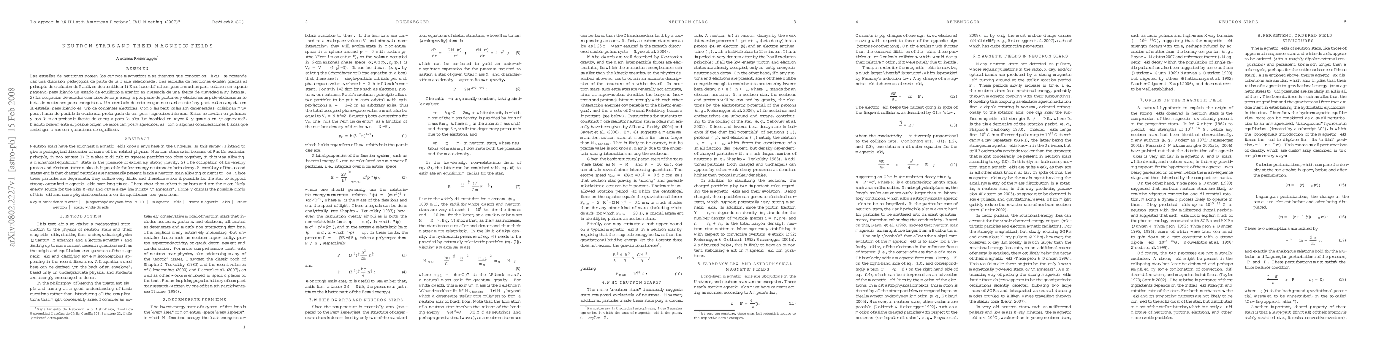 Neutron stars have the strongest magnetic fields known anywhere in the Universe. In this review, I intend to give a pedagogical discussion of some of the related physics. Neutron stars exist because of Pauli's exclusion principle, in two senses: 1) It makes it difficult to squeeze particles too close together, in this way allowing a mechanical equilibrium state in the presence of extremely strong gravity. 2) The occupation of low-energy proton and electron states makes it impossible for low-energy neutrons to beta decay. A corollary of the second statement is that charged particles are necessarily present inside a neutron star, allowing currents to flow. Since these particles are degenerate, they collide very little, and therefore make it possible for the star to support strong, organized magnetic fields over long times. These show themselves in pulsars and are the most likely energy source for the high X-ray and gamma-ray luminosity ``magnetars''. I briefly discuss the possible origin of this field and some physical constraints on its equilibrium configurations.