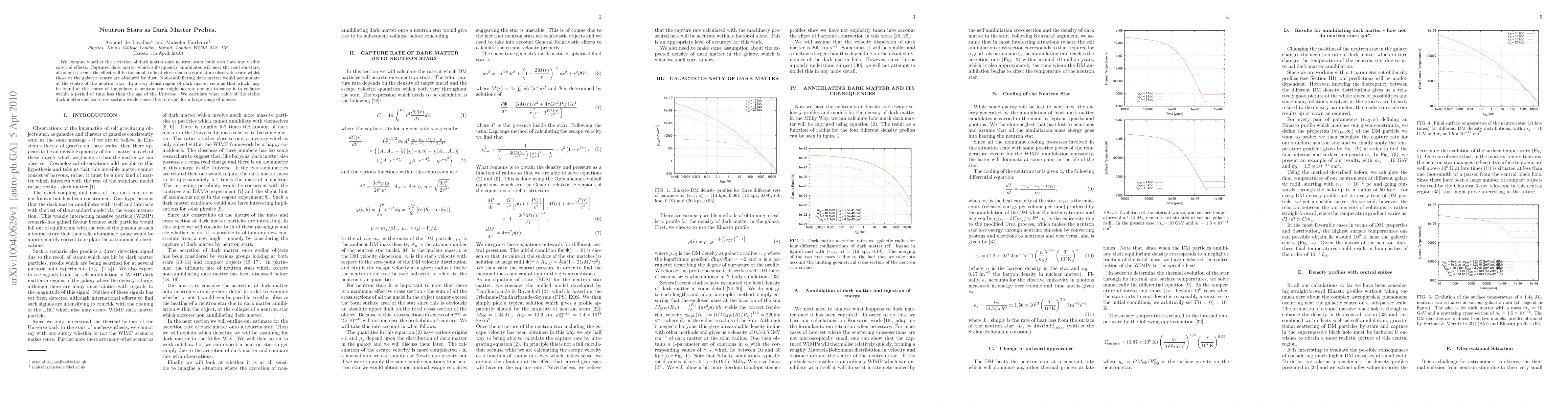 This paper explores if neutron stars can serve as probes for dark matter through accretion and potential annihilation effects, finding that while dark matter heating is minimal, dense regions like galactic centers could lead to neutron star collapse due to excessive dark matter accumulation. The study calculates the dark matter-nucleon cross section threshold for such collapse across various neutron star masses.