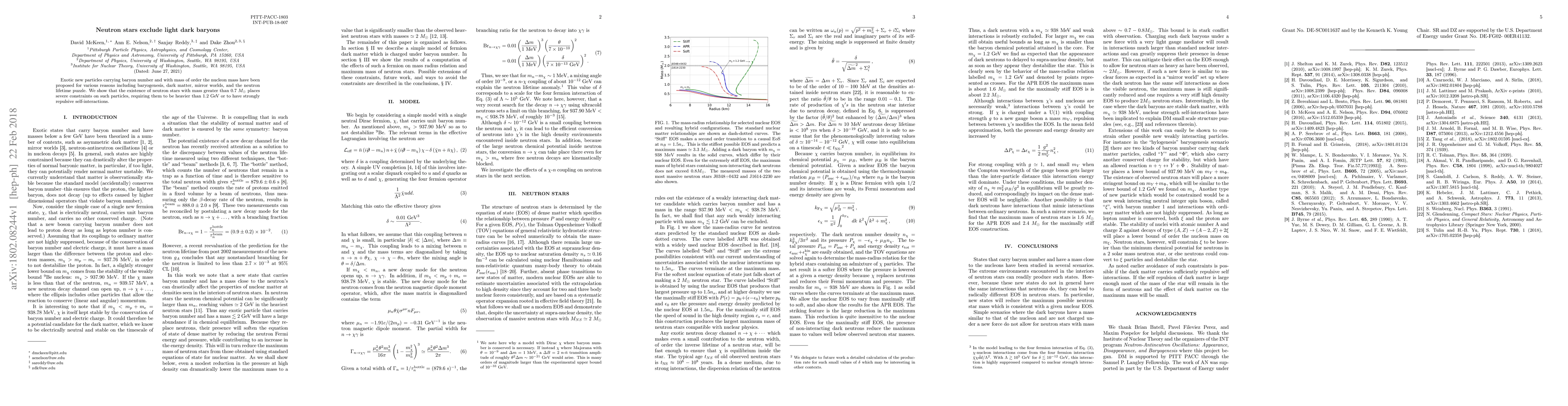 Exotic new particles carrying baryon number and with mass of order the nucleon mass have been proposed for various reasons including baryogenesis, dark matter, mirror worlds, and the neutron lifetime puzzle. We show that the existence of neutron stars with mass greater than 0.7 $M_\odot$ places severe constraints on such particles, requiring them to be heavier than 1.2 GeV or to have strongly repulsive self-interactions.
