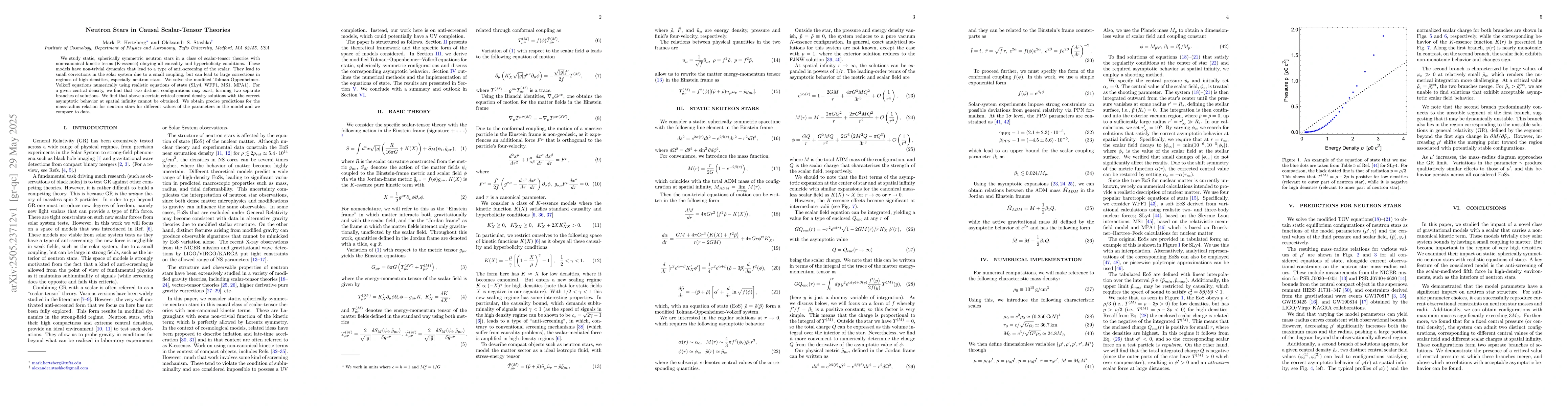 The paper presents a novel numerical approach to solving modified Tolman-Oppenheimer-Volkoff equations in causal scalar-tensor theories, providing a comprehensive analysis of neutron star properties under these conditions.