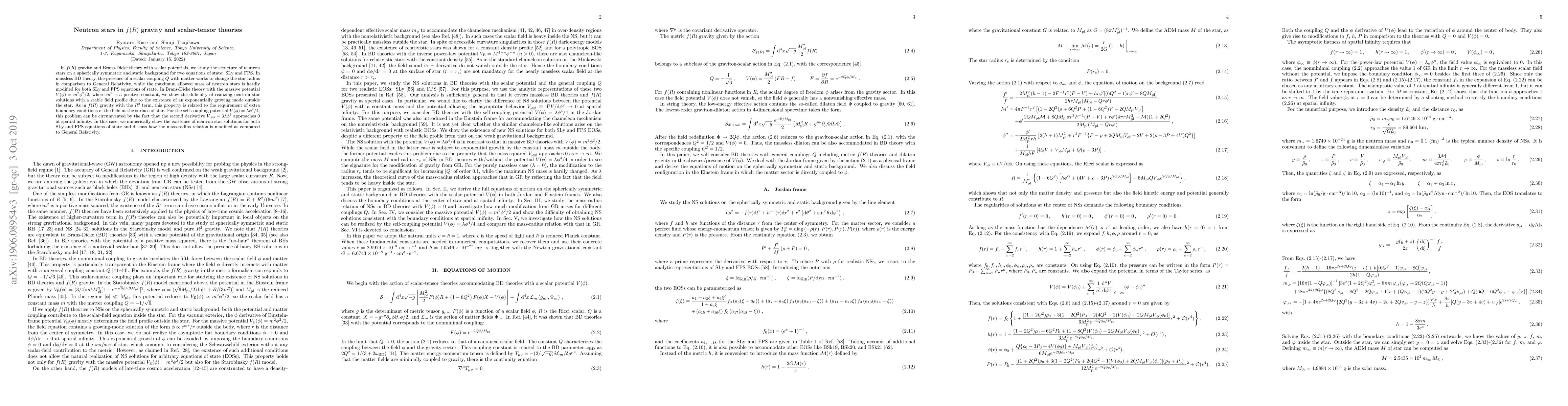 This paper investigates neutron star structures in $f(R)$ gravity and Brans-Dicke theories, finding that scalar coupling modifies star radii but not maximum masses. In Brans-Dicke theory with a massive potential, stable neutron star solutions are difficult due to an exponentially growing mode outside the star.