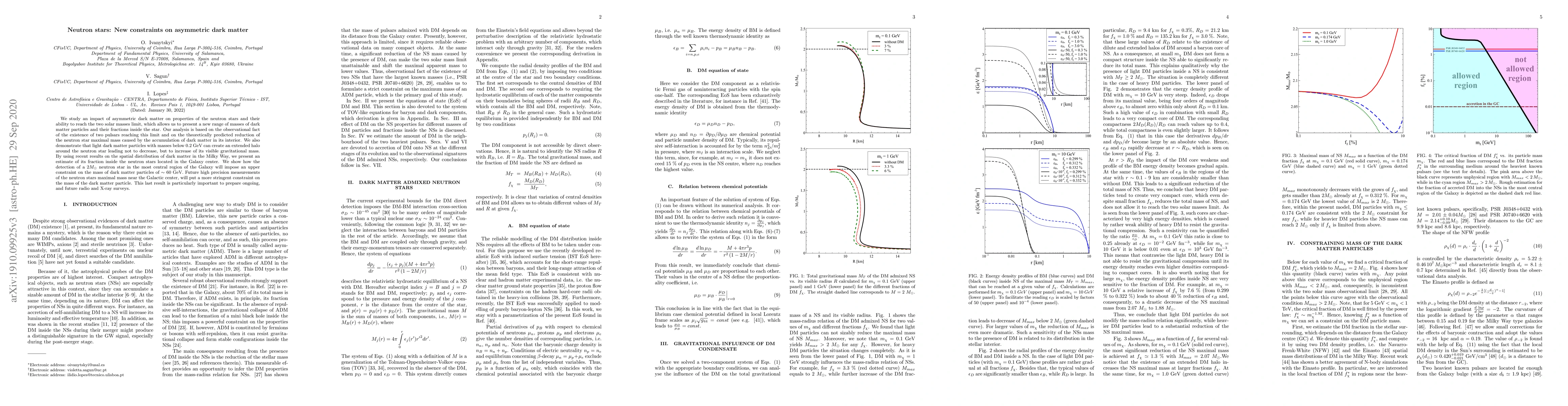 This paper investigates how asymmetric dark matter affects neutron star properties and their mass limits, providing new constraints on dark matter particle masses. It finds that light dark matter particles can increase neutron star gravitational mass, and future high-precision measurements near the Galactic center will further constrain dark matter particle masses.