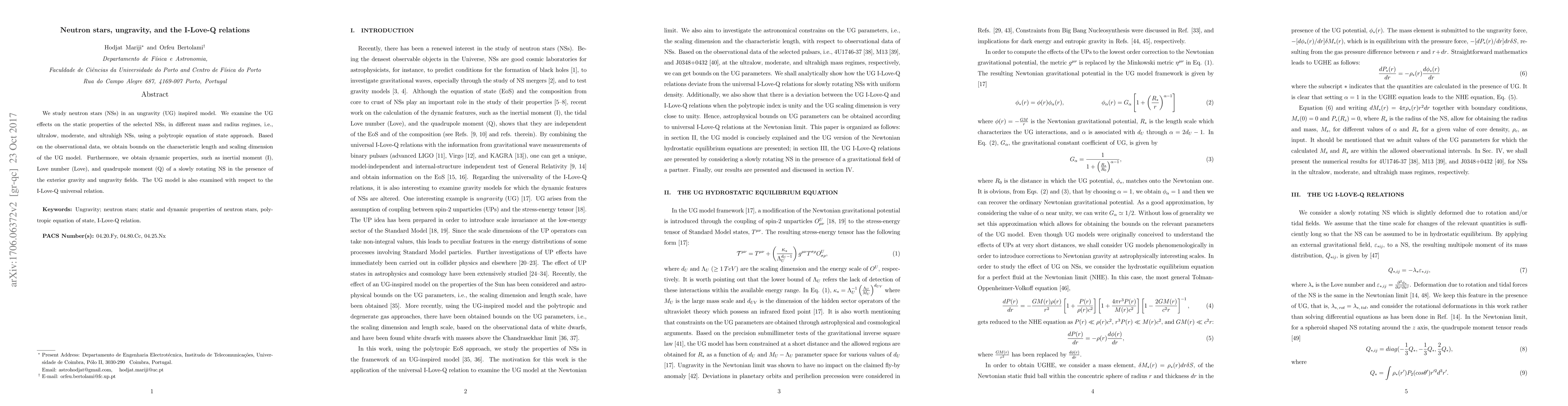 This paper investigates neutron stars within an ungravity-inspired model, assessing its effects on static and dynamic properties across various mass regimes. It derives bounds on the model's parameters and examines the I-Love-Q relation in the context of these neutron stars.