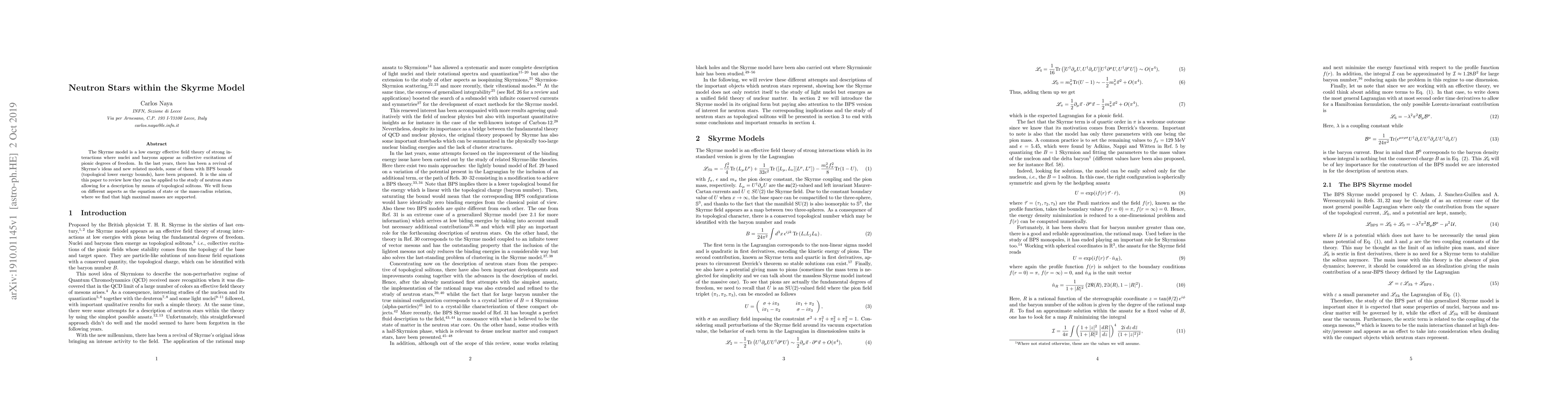 Researchers used the Skyrme model to study neutron stars, finding that high maximal masses can be supported and providing new insights into the equation of state and mass-radius relation.