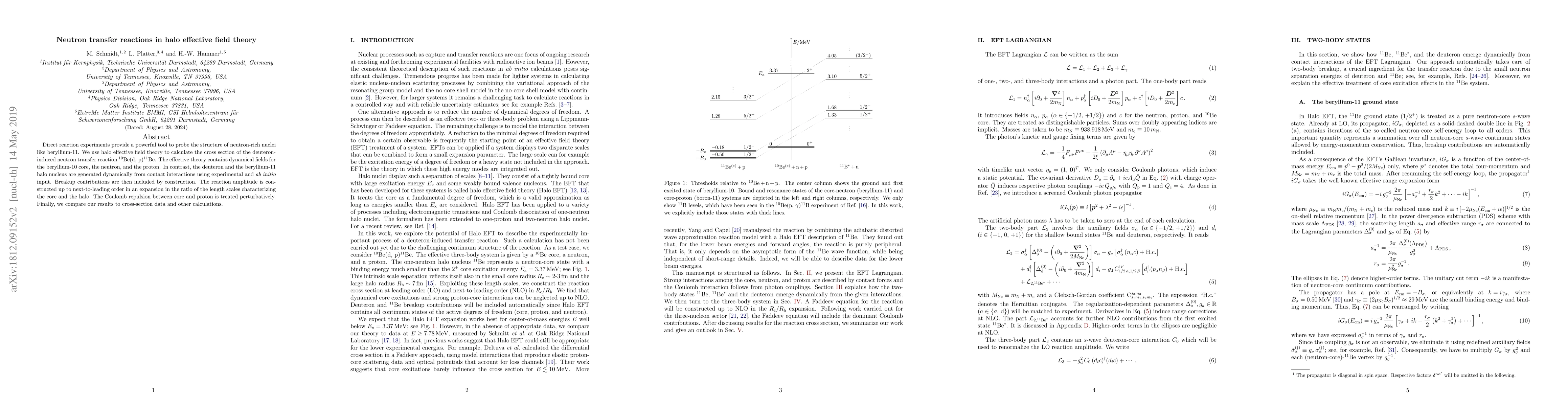 This paper uses halo effective field theory to calculate the cross section for the neutron transfer reaction ${}^{10}\text{Be}(\text{d},\,\text{p}){}^{11}\text{Be}$, focusing on the structure of neutron-rich beryllium-11, and compares the results to experimental data and other theoretical calculations.