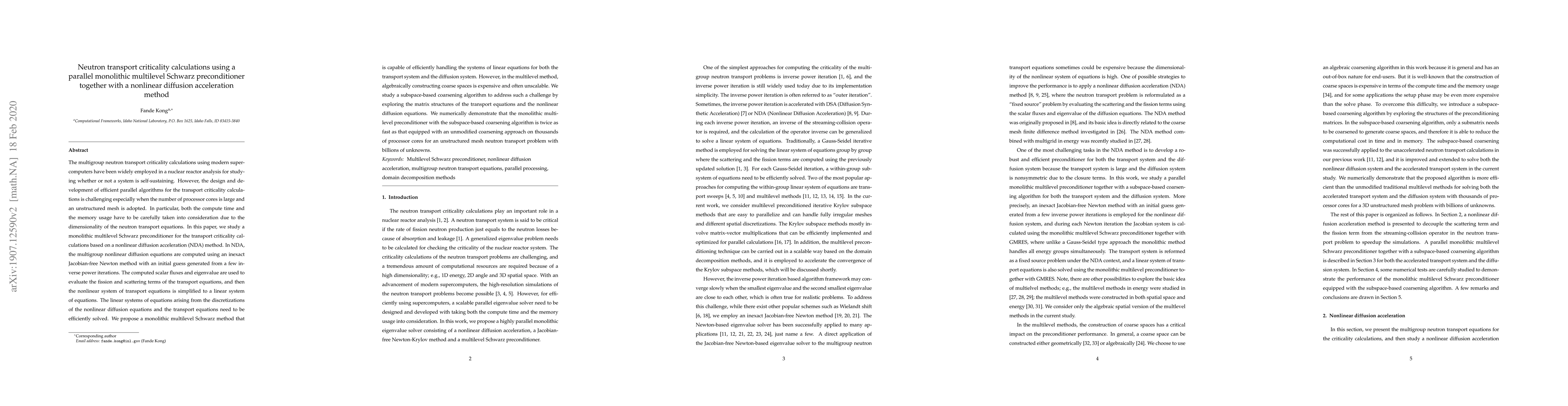 This paper proposes a parallel monolithic multilevel Schwarz preconditioner combined with a nonlinear diffusion acceleration method to efficiently solve multigroup neutron transport criticality calculations on supercomputers. The study introduces a subspace-based coarsening algorithm to improve scalability and demonstrates significant speedup on thousands of processor cores.