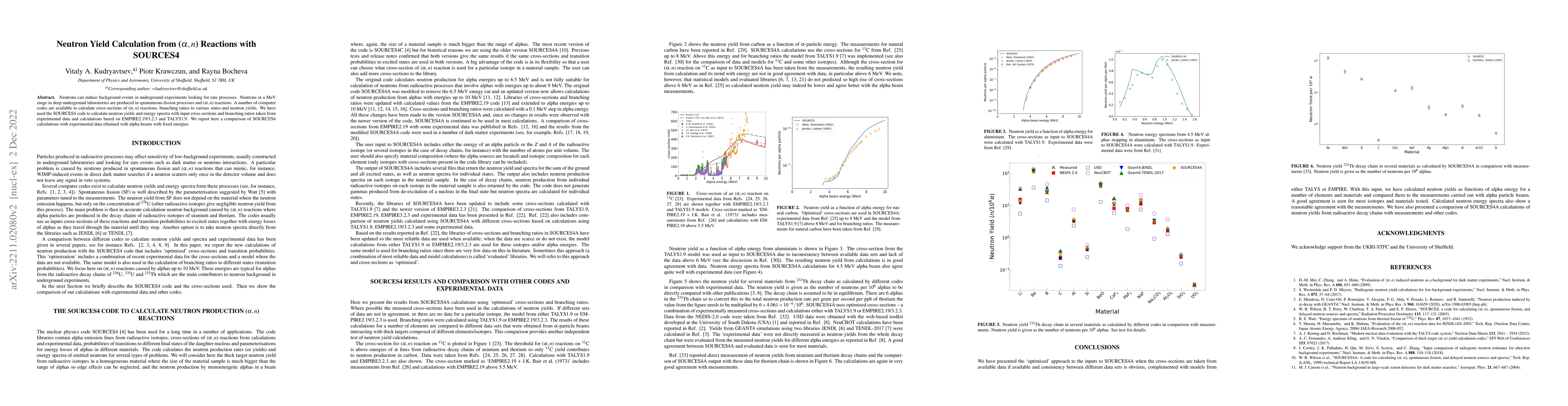 Neutrons can induce background events in underground experiments looking for rare processes. Neutrons in a MeV range in deep underground laboratories are produced in spontaneous fission processes and ($\alpha,n$) reactions. A number of computer codes are available to calculate cross-sections of ($\alpha,n$) reactions, branching ratios to various states and neutron yields. We have used the SOURCES4 code to calculate neutron yields and energy spectra with input cross-sections and branching ratios taken from experimental data and calculations based on EMPIRE2.19/3.2.3 and TALYS1.9. We report here a comparison of SOURCES4 calculations with experimental data obtained with alpha beams with fixed energies.
