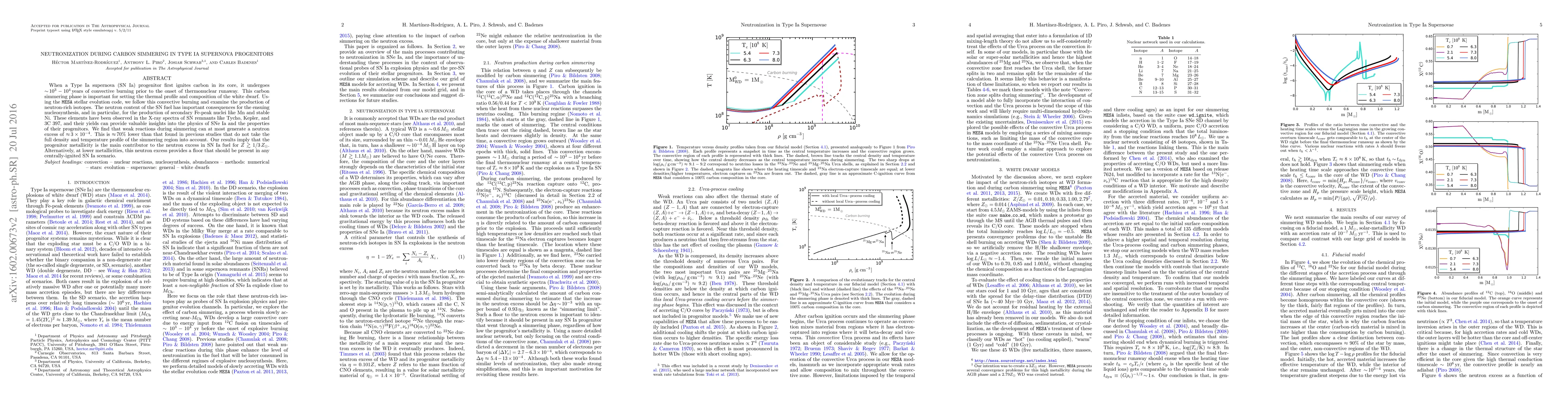 A study on Type Ia supernova progenitors found that carbon simmering in the core can generate a neutron excess of approximately 3 x 10^-4, which is lower than previous estimates.
