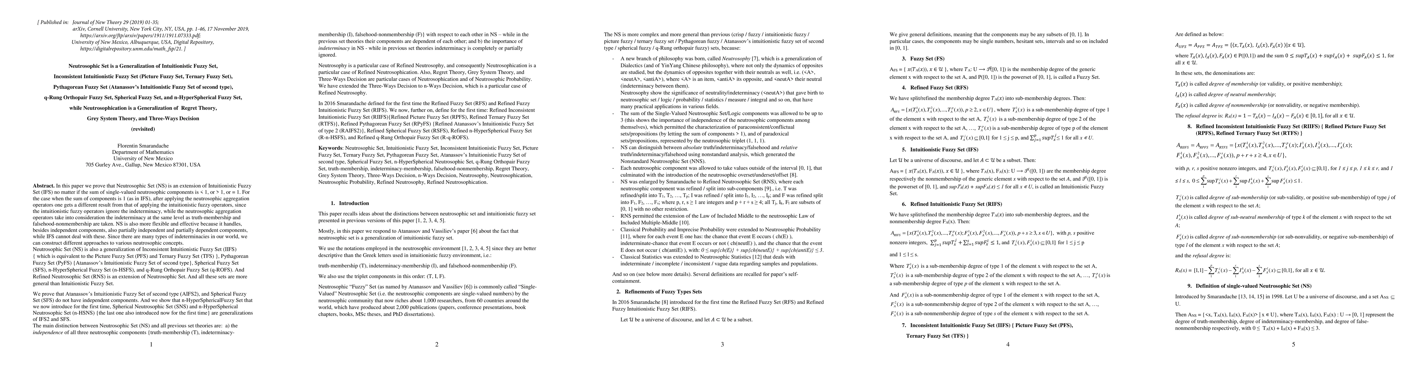 This paper demonstrates that the Neutrosophic Set (NS) generalizes Intuitionistic Fuzzy Set (IFS) by incorporating indeterminacy, unlike IFS which ignores it. NS is more flexible, handling various types of indeterminacies and extending the Three-Ways Decision to n-Ways Decision. The study also introduces n-HyperSpherical Fuzzy Set and n-HyperSpherical Neutrosophic Set, showcasing NS's capacity to manage complex, multi-dimensional data scenarios.