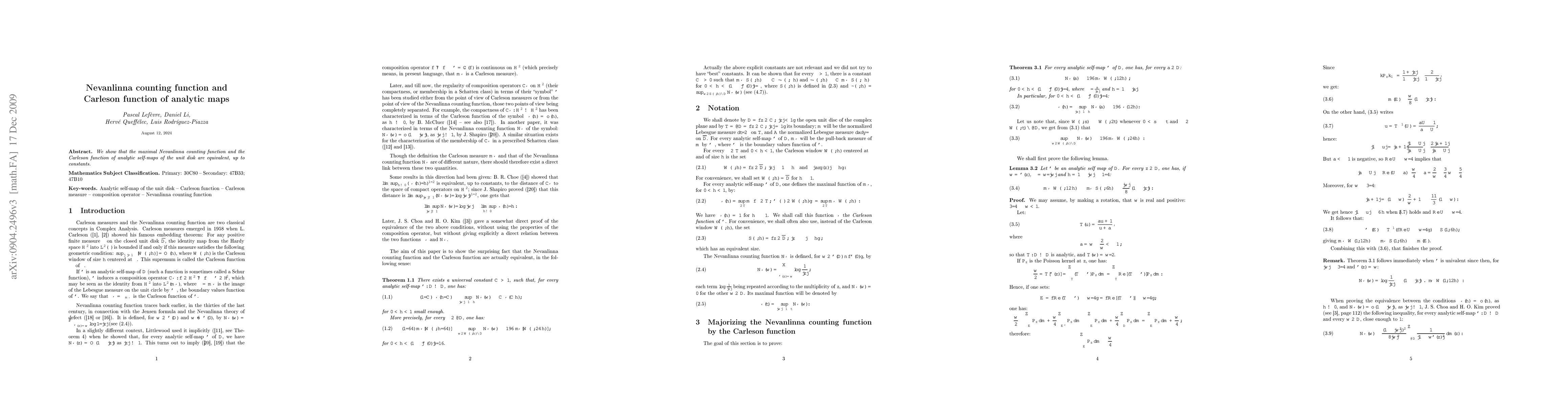 Summary: This paper demonstrates the equivalence, up to constants, between the maximal Nevanlinna counting function and the Carleson function for analytic self-maps of the unit disk. The findings provide a new perspective on the relationship between these two important functions in complex analysis.