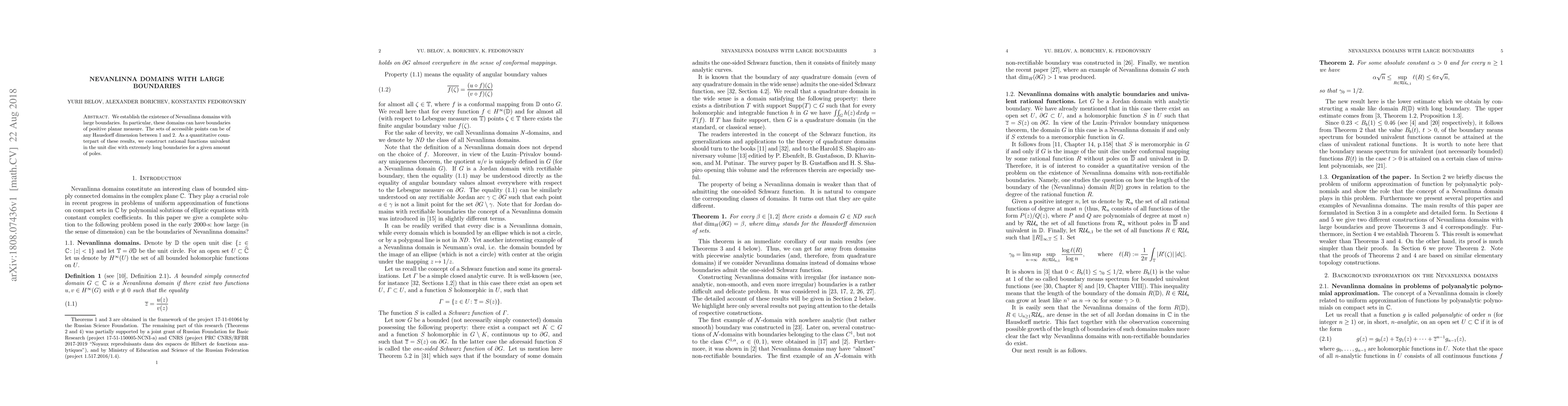The paper introduces a novel approach to constructing rational functions with specified boundary properties and proves the existence of Nevanlinna domains with large boundaries and varied Hausdorff dimensions for accessible points.