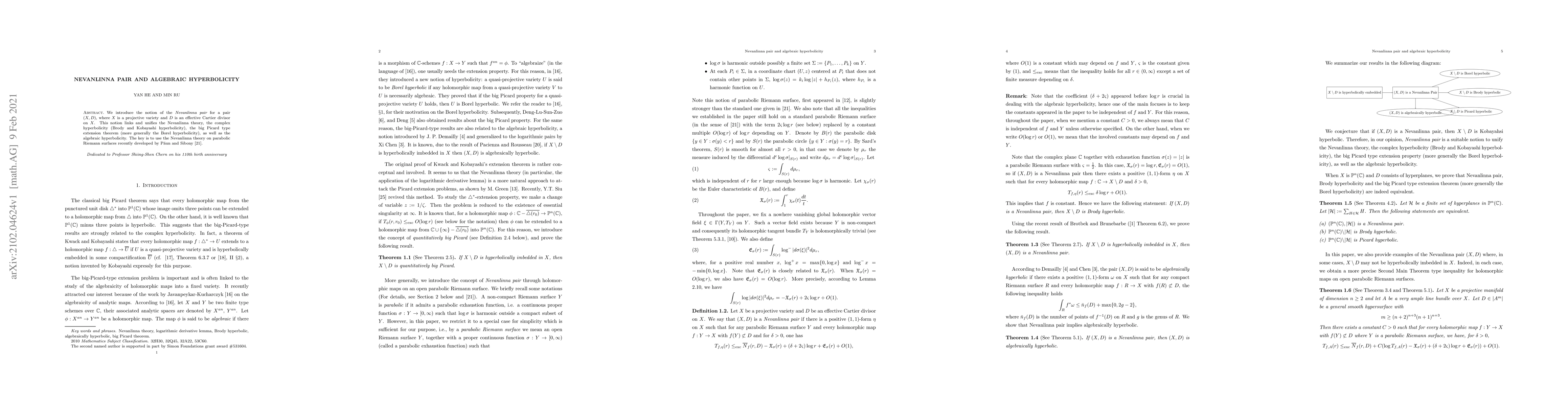 This paper introduces the concept of the Nevanlinna pair for projective varieties and their effective divisors, unifying various notions of algebraic hyperbolicity and linking them with complex hyperbolicity and Borel hyperbolicity through recent developments in Nevanlinna theory on parabolic Riemann surfaces.