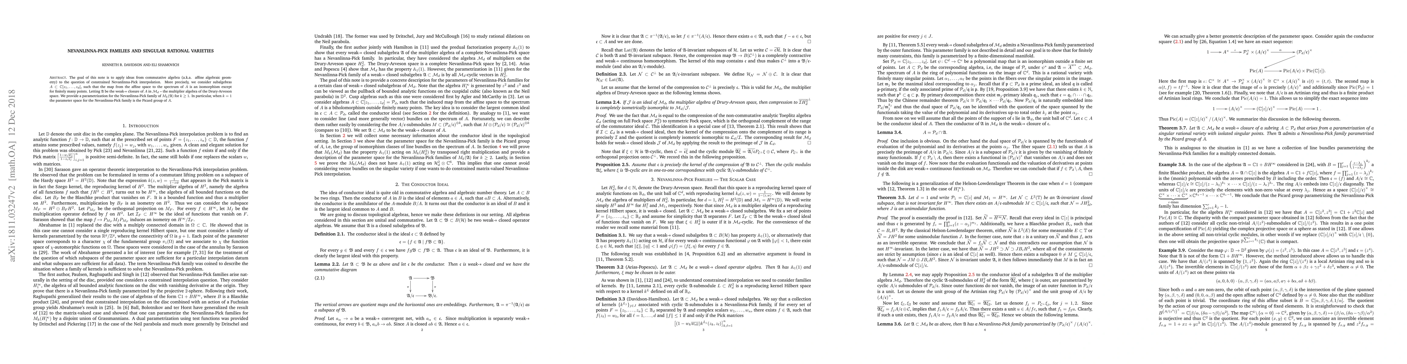 This paper applies commutative algebra to constrained Nevanlinna-Pick interpolation, focusing on subalgebras of polynomial functions that map to the spectrum except at a few points. It provides a parametrization for the Nevanlinna-Pick family of multiplier algebras, particularly identifying the parameter space for $k=1$ as the Picard group of the subalgebra.