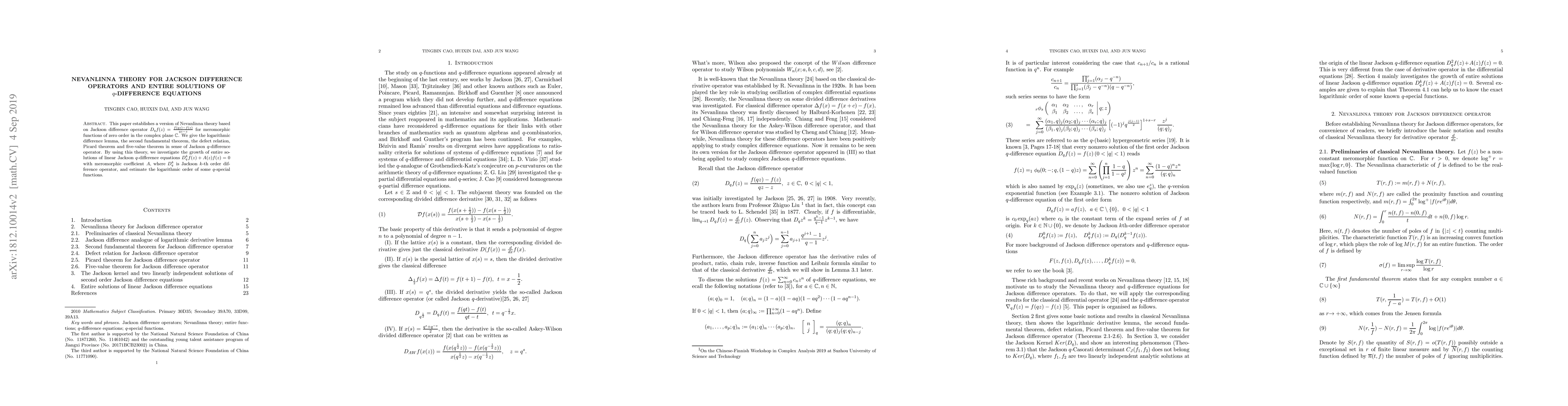 The research provides a new version of Nevanlinna theory based on Jackson difference operator $D_{q}f(z)$.