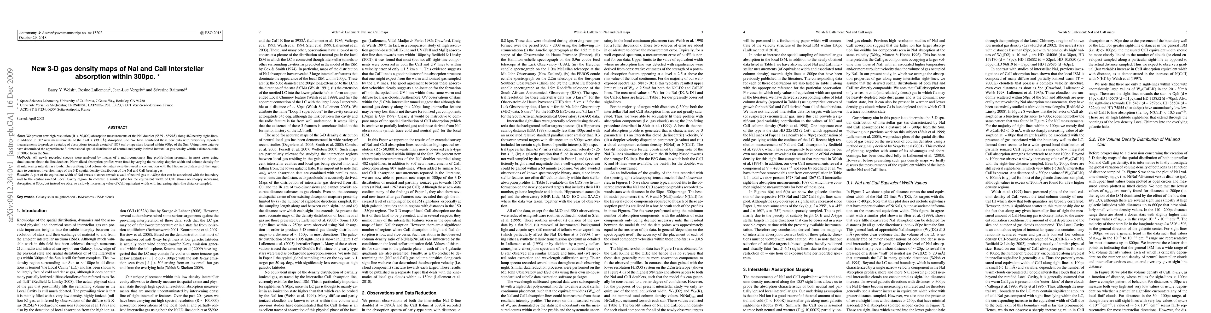 This study creates a 3D map of neutral gas density in the interstellar medium within 300pc of the Sun, revealing a boundary wall at 80pc and differing absorption patterns for NaI and CaII lines.