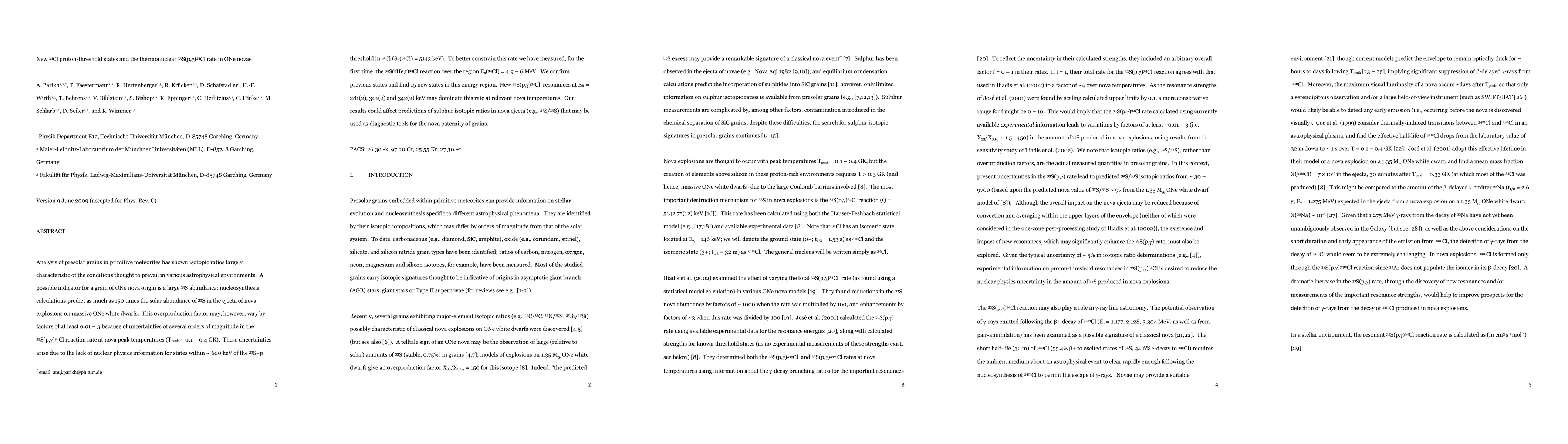 Analysis of presolar grains in primitive meteorites has shown isotopic ratios largely characteristic of the conditions thought to prevail in various astrophysical environments. A possible indicator for a grain of ONe nova origin is a large 33S abundance: nucleosynthesis calculations predict as much as 150 times the solar abundance of 33S in the ejecta of nova explosions on massive ONe white dwarfs. This overproduction factor may, however, vary by factors of at least 0.01 - 3 because of uncertainties of several orders of magnitude in the 33S(p,gamma)34Cl reaction rate at nova peak temperatures (Tpeak ~ 0.1 - 0.4 GK). These uncertainties arise due to the lack of nuclear physics information for states within ~ 600 keV of the 33S+p threshold in 34Cl (Sp(34Cl) = 5143 keV). To better constrain this rate we have measured, for the first time, the 34S(3He,t)34Cl reaction over the region Ex(34Cl) = 4.9 - 6 MeV. We confirm previous states and find 15 new states in this energy region. New 33S(p,gamma)34Cl resonances at ER = 281(2), 301(2) and 342(2) keV may dominate this rate at relevant nova temperatures. Our results could affect predictions of sulphur isotopic ratios in nova ejecta (e.g., 32S/33S) that may be used as diagnostic tools for the nova paternity of grains.