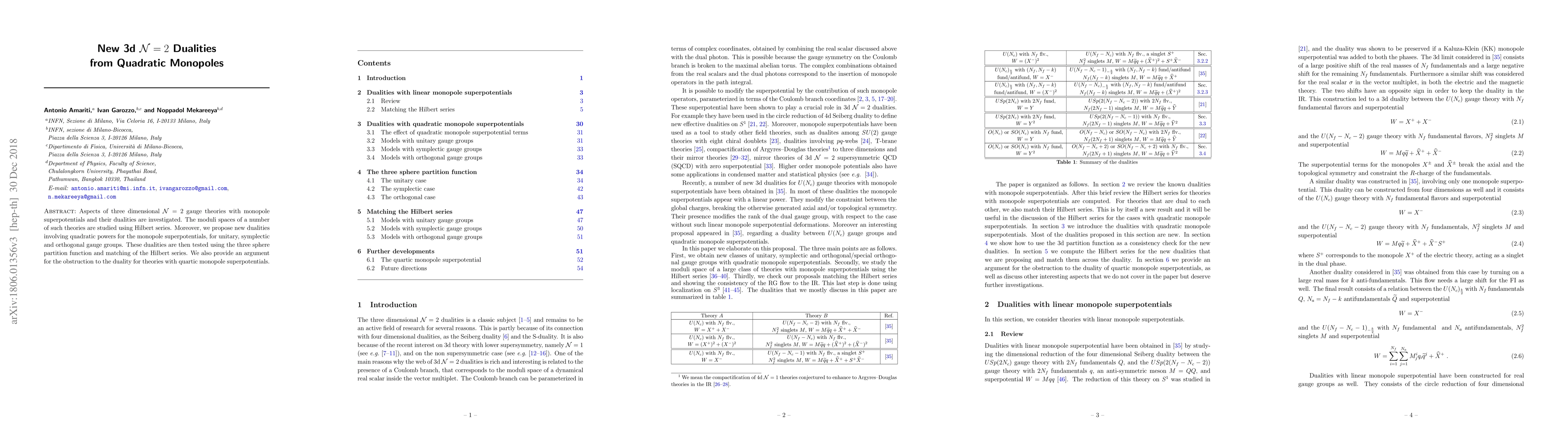 This paper investigates new dualities in three dimensional $\mathcal{N}=2$ gauge theories with monopole superpotentials, proposing novel dualities involving quadratic monopoles and testing them via three sphere partition functions and Hilbert series matching. It also discusses obstructions to duality for theories with quartic monopole superpotentials.