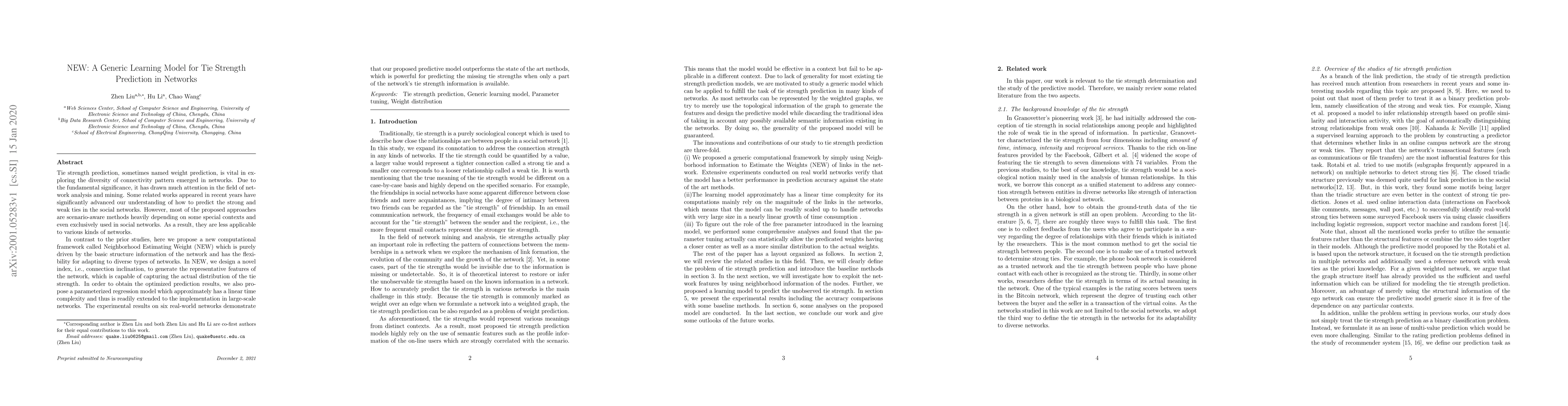 A new computational framework, Neighborhood Estimating Weight (NEW), predicts tie strength in networks without relying on special contexts, offering a flexible approach to various network types.