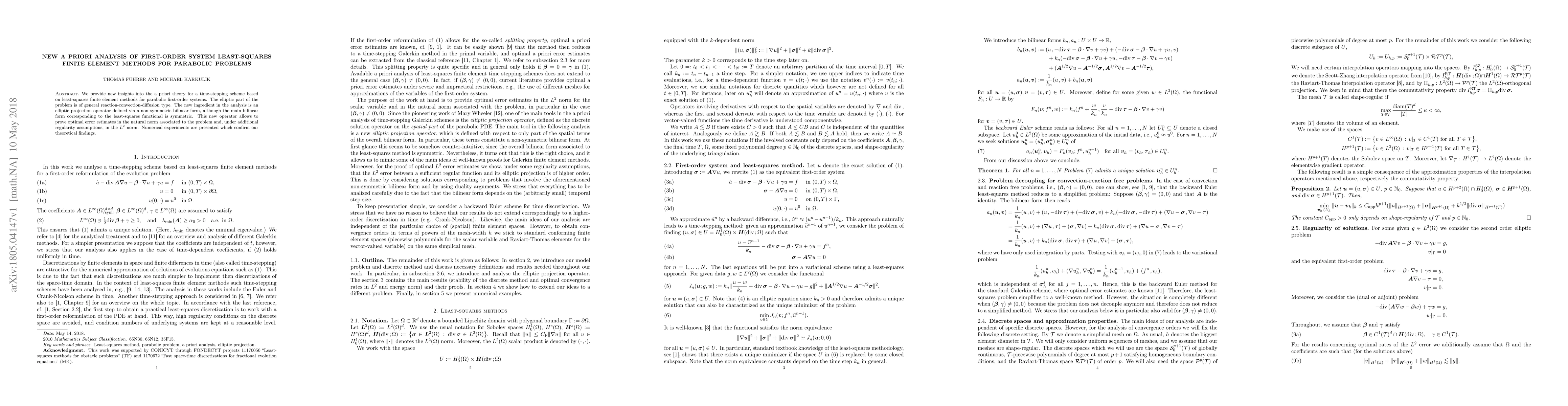 The research paper introduces an innovative elliptic projection operator for analyzing first-order system least-squares finite element methods in parabolic problems. This new operator enables optimal error estimates in relevant norms, with supporting numerical experiments confirming the theoretical findings.