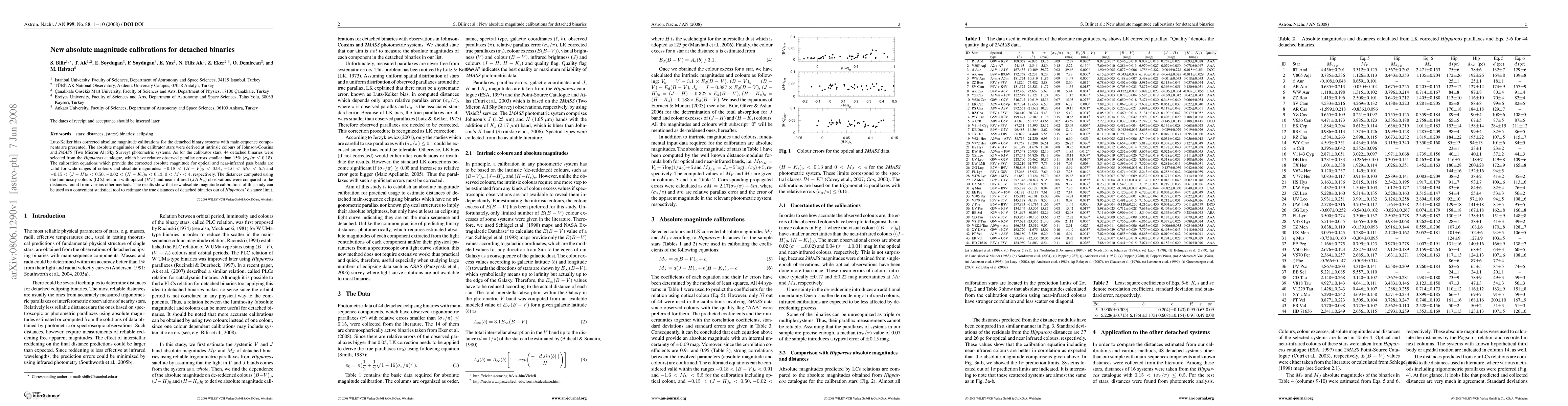 for the calibrator stars, 44 detached binaries were selected from the Hipparcos
