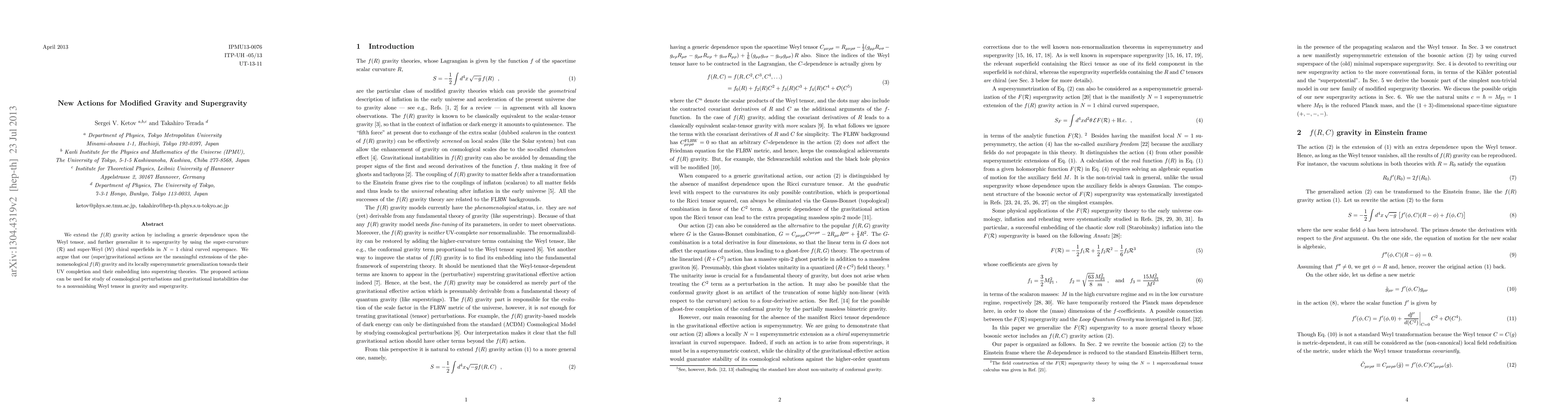 The paper presents a systematic extension of f(R) gravity to include Weyl tensor dependence and its supergravity generalization, providing a new action that can be used for studying cosmological perturbations and gravitational instabilities.