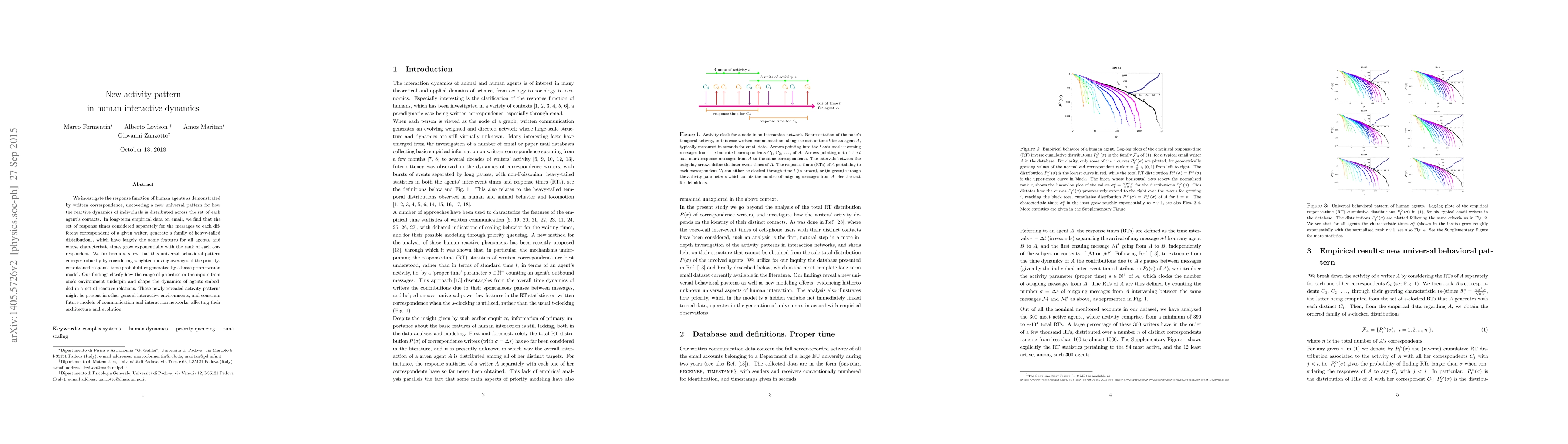 We investigate the response function of human agents as demonstrated by written correspondence, uncovering a new universal pattern for how the reactive dynamics of individuals is distributed across the set of each agent's contacts. In long-term empirical data on email, we find that the set of response times considered separately for the messages to each different correspondent of a given writer, generate a family of heavy-tailed distributions, which have largely the same features for all agents, and whose characteristic times grow exponentially with the rank of each correspondent. We furthermore show that this universal behavioral pattern emerges robustly by considering weighted moving averages of the priority-conditioned response-time probabilities generated by a basic prioritization model. Our findings clarify how the range of priorities in the inputs from one's environment underpin and shape the dynamics of agents embedded in a net of reactive relations. These newly revealed activity patterns might be present in other general interactive environments, and constrain future models of communication and interaction networks, affecting their architecture and evolution.