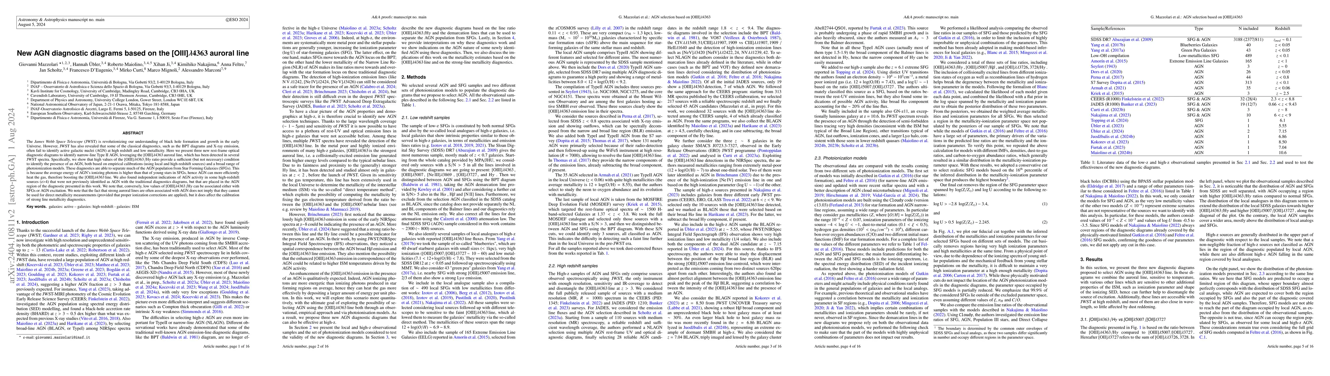 This research introduces new diagnostic diagrams based on the [OIII]$\lambda 4363$ auroral line to identify AGN in high-redshift galaxies, as traditional methods often fail. These new diagrams successfully distinguish AGN from star-forming galaxies due to the higher energy of AGN ionizing photons.