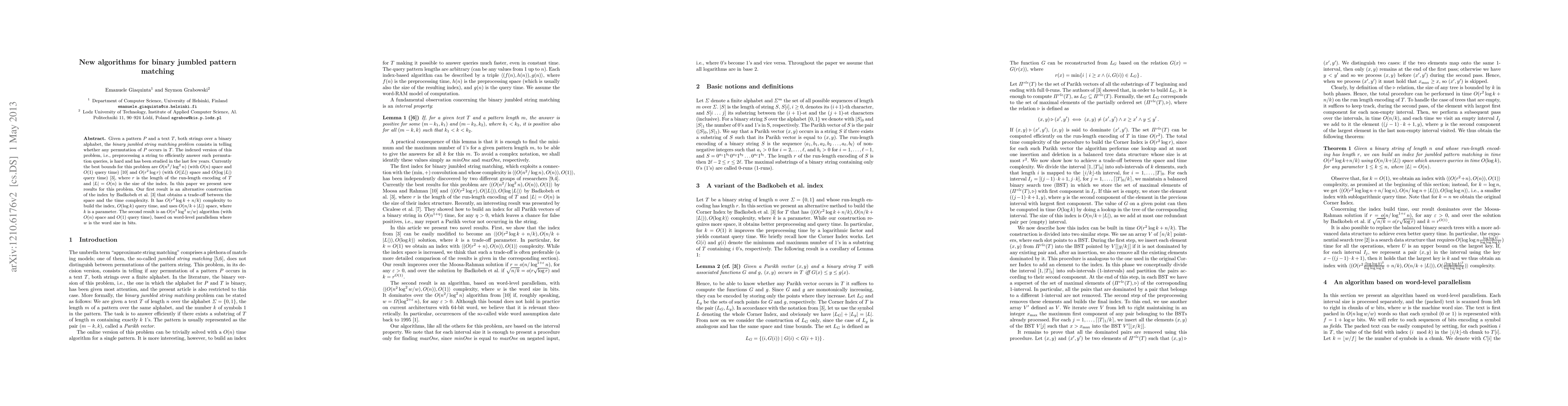 Given a pattern $P$ and a text $T$, both strings over a binary alphabet, the binary jumbled string matching problem consists in telling whether any permutation of $P$ occurs in $T$. The indexed version of this problem, i.e., preprocessing a string to efficiently answer such permutation queries, is hard and has been studied in the last few years. Currently the best bounds for this problem are $O(n^2/\log^2 n)$ (with O(n) space and O(1) query time) and $O(r^2\log r)$ (with O(|L|) space and $O(\log|L|)$ query time), where $r$ is the length of the run-length encoding of $T$ and $|L| = O(n)$ is the size of the index. In this paper we present new results for this problem. Our first result is an alternative construction of the index by Badkobeh et al. that obtains a trade-off between the space and the time complexity. It has $O(r^2\log k + n/k)$ complexity to build the index, $O(\log k)$ query time, and uses $O(n/k + |L|)$ space, where $k$ is a parameter. The second result is an $O(n^2 \log^2 w / w)$ algorithm (with O(n) space and O(1) query time), based on word-level parallelism where $w$ is the word size in bits.
