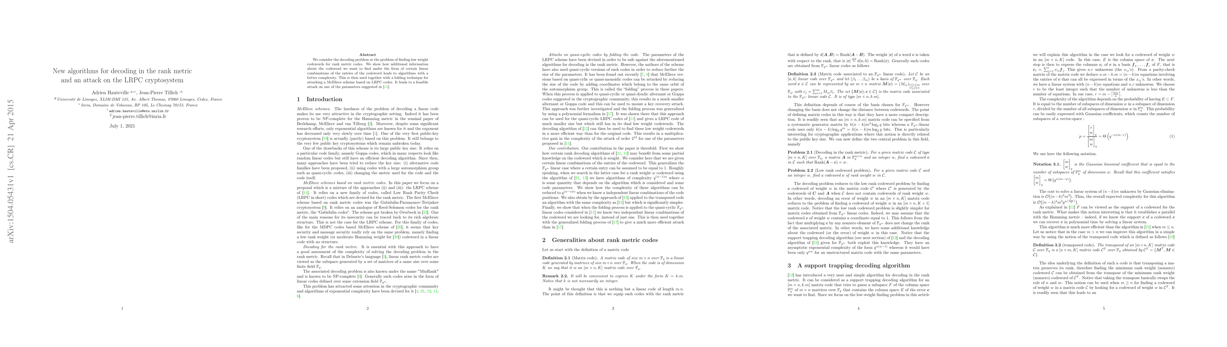 We consider the decoding problem or the problem of finding low weight codewords for rank metric codes. We show how additional information about the codeword we want to find under the form of certain linear combinations of the entries of the codeword leads to algorithms with a better complexity. This is then used together with a folding technique for attacking a McEliece scheme based on LRPC codes. It leads to a feasible attack on one of the parameters suggested in \cite{GMRZ13}.