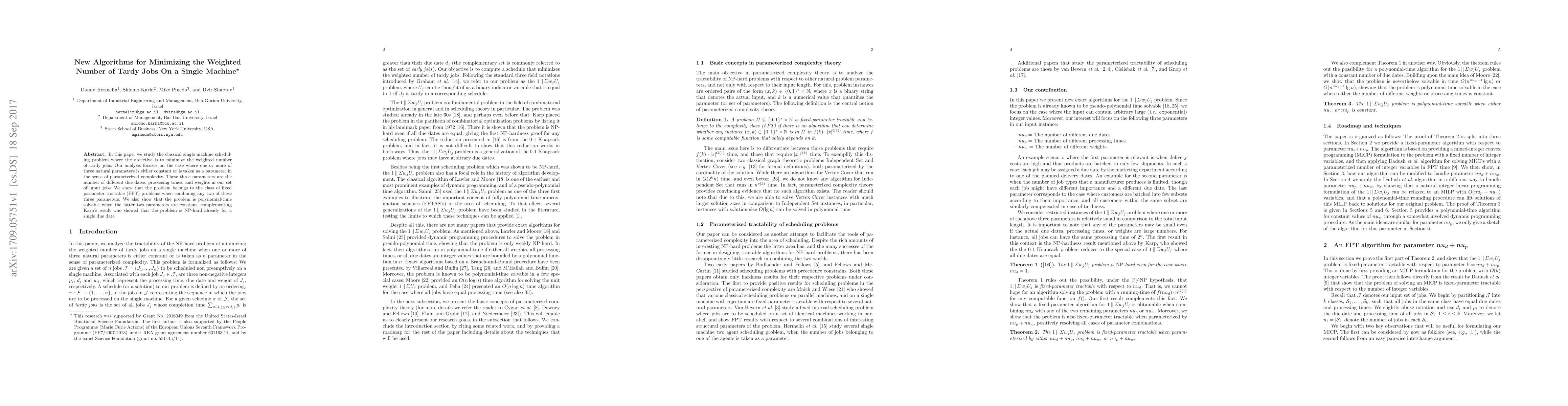 Researchers developed new algorithms to minimize tardy jobs on a single machine, showing that the problem is fixed parameter tractable when combining two of three parameters: due dates, processing times, or weights.