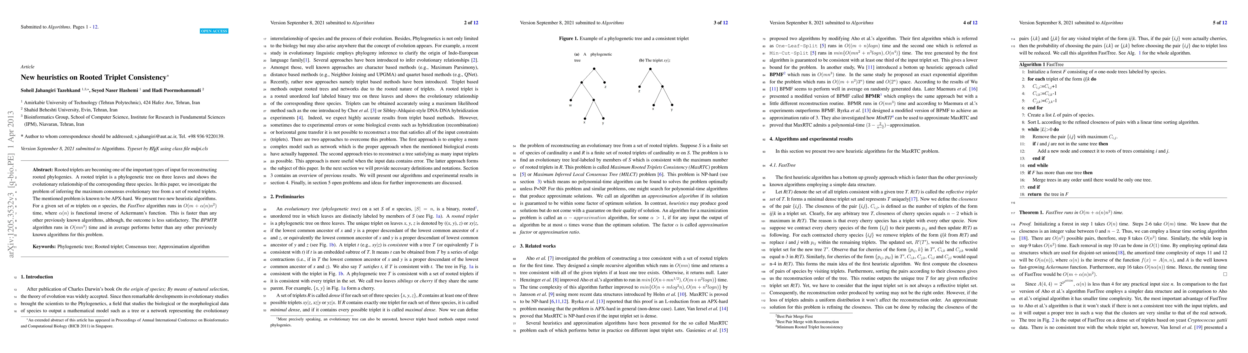 This paper introduces two new heuristic algorithms for finding the maximum consensus evolutionary tree from a set of rooted triplets. The FastTree algorithm runs in O(mn^2) time but yields less satisfactory outcomes, while the BPMTR algorithm runs in O(mn^3) time and generally performs better than existing approximation methods.