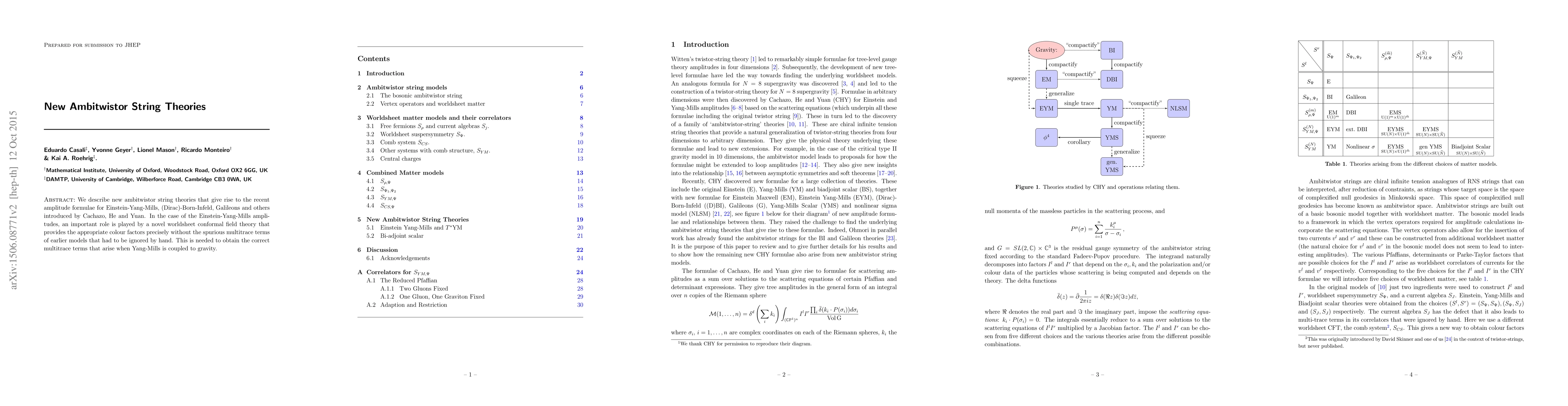 New ambitwistor string theories describe novel worldsheet conformal field theories that give rise to recent amplitude formulae for various physical systems, resolving previous issues with spurious multitrace terms.