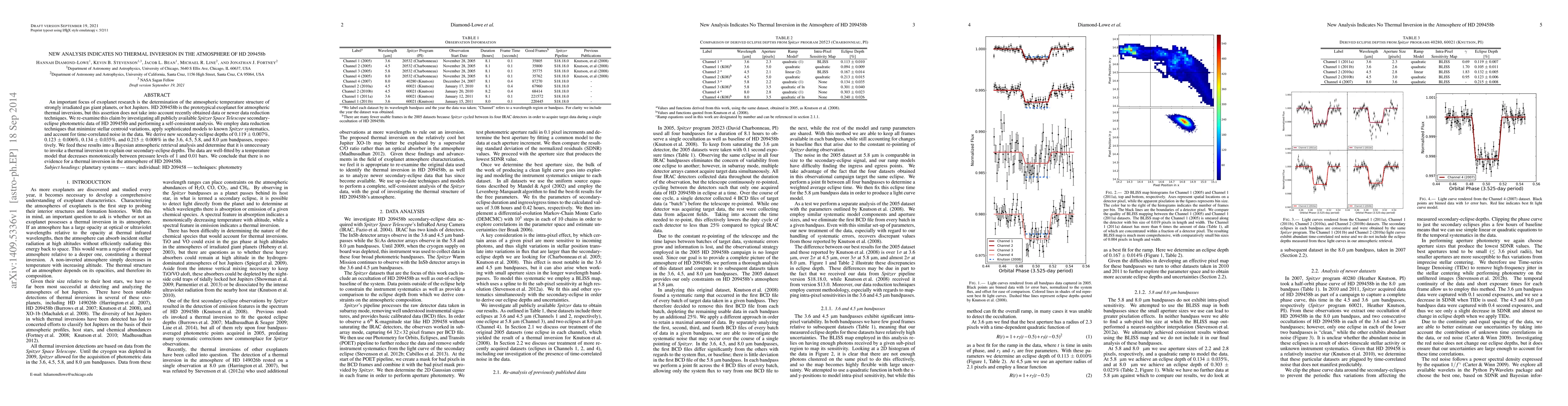 New analysis of Spitzer data for HD 209458b reveals no thermal inversion in its atmosphere, contradicting previous claims, and instead finds a temperature model that decreases monotonically with altitude.