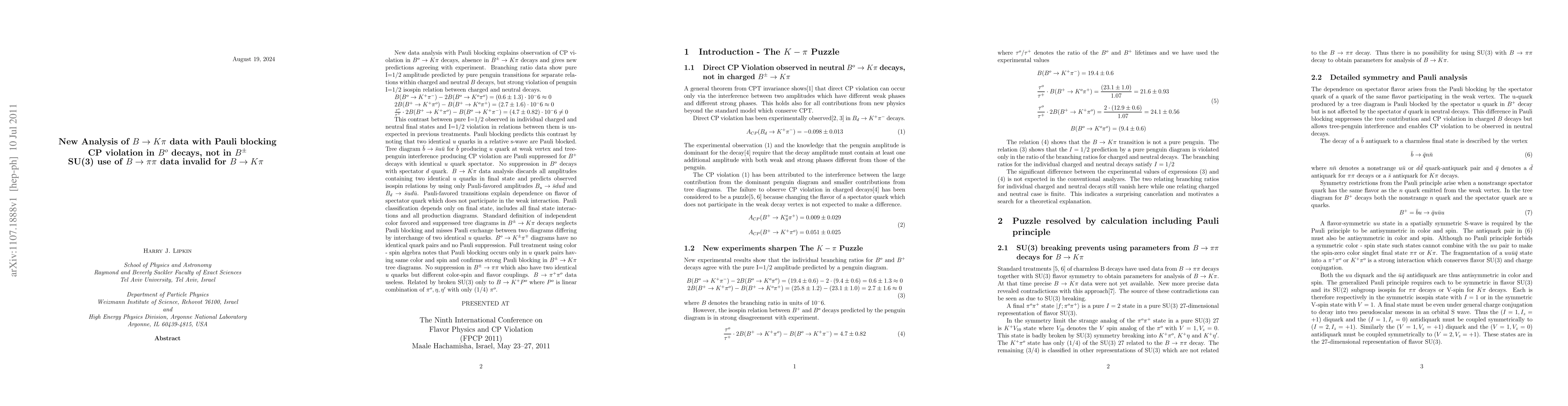 New data analysis with Pauli blocking explains observation of CP violation in $B^o\rightarrow K\pi$ decays, absence in $B^{\pm} \rightarrow K\pi$ decays and gives new predictions agreeing with experiment. Branching ratio data show pure I=1/2 amplitude predicted by pure penguin transitions for separate relations within charged and neutral B decays, but strong violation of penguin I=1/2 isospin relation between charged and neutral decays. $B(B^o \rightarrow K^+ \pi^-) - 2B(B^o\rightarrow K^o \pi^o) = %(19.4 \pm 0.6)- 2\cdot (9.4 \pm 0.6) = (0.6 \pm 1.3)\cdot 10^-6 \approx 0$ $2B(B^+ \rightarrow K^+ \pi^o) - B(B^+ \rightarrow K^o \pi^+) = %(25.8\pm 1.2) - (23.1 \pm 1.0) = (2.7 \pm 1.6)\cdot 10^-6 \approx 0$ ${{\tau^o}\over{\tau^+}}\cdot 2B(B^+ \rightarrow K^+ \pi^o) - B(B^o \rightarrow K^+ \pi^-) = (4.7 \pm 0.82)\cdot 10^-6 \not= 0$ This contrast between pure I=1/2 observed in individual charged and neutral final states and I=1/2 violation in relations between them is unexpected in previous treatments. Pauli blocking predicts this contrast by noting that two identical $u$ quarks in a relative s-wave are Pauli blocked. Tree diagram $\bar b\rightarrow \bar s u \bar u$ for $\bar b$ producing $u$ quark at weak vertex and tree-penguin interference producing CP violation are Pauli suppressed for $B^+$ decays with identical $u$ quark spectator. No suppression in $B^o$ decays with spectator $d$ quark. $B\rightarrow K\pi$ data analysis discards all amplitudes containing two identical $u$ quarks in final state and predicts observed isospin relations by using only Pauli-favored amplitudes ${B_u}\rightarrow \bar s du \bar d$ and ${B_d}\rightarrow \bar s ud \bar u$. Pauli-favored transitions explain dependence on flavor of spectator quark which does not participate in the weak interaction.