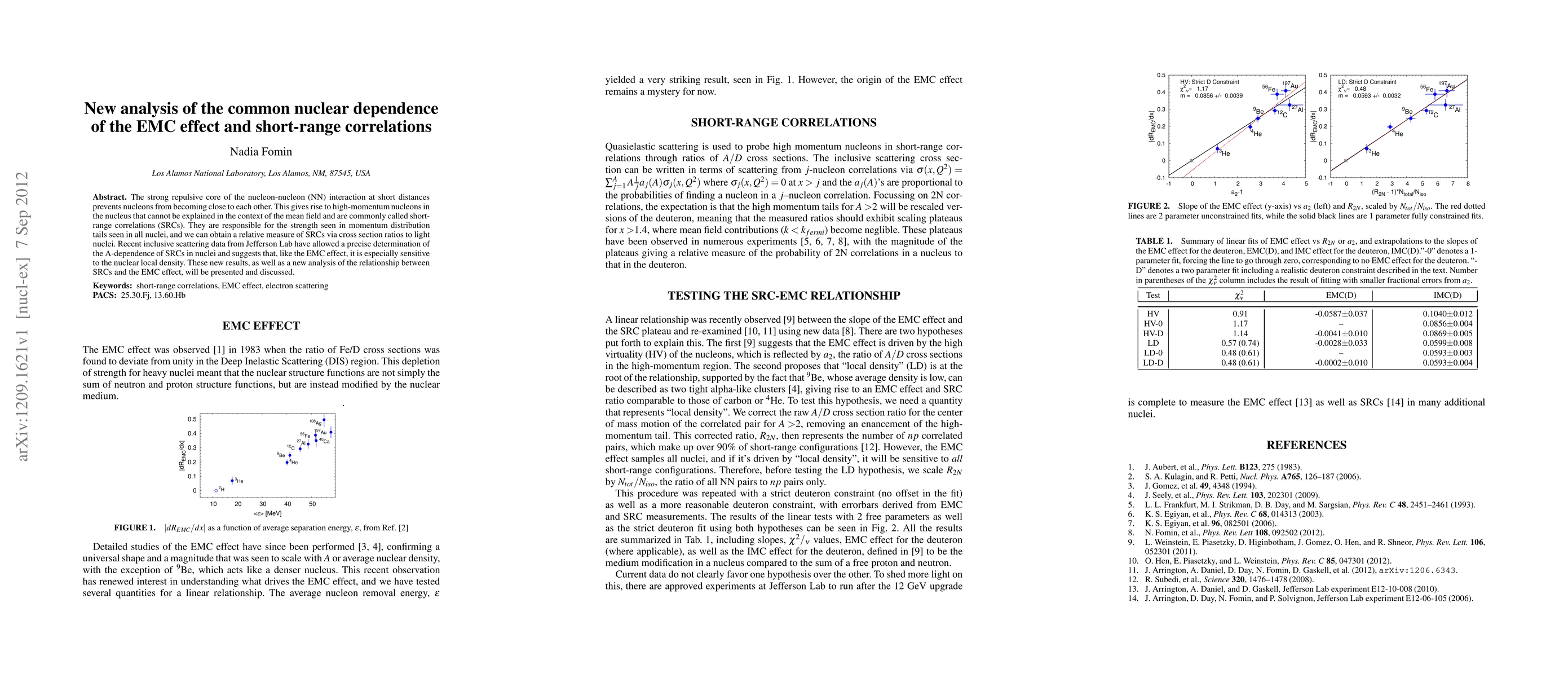 This paper analyzes the relationship between short-range correlations (SRCs) in nuclei and the EMC effect, showing that both phenomena are strongly dependent on nuclear local density. Recent data from Jefferson Lab reveals a precise A-dependence of SRCs, suggesting a common nuclear dependence with the EMC effect.