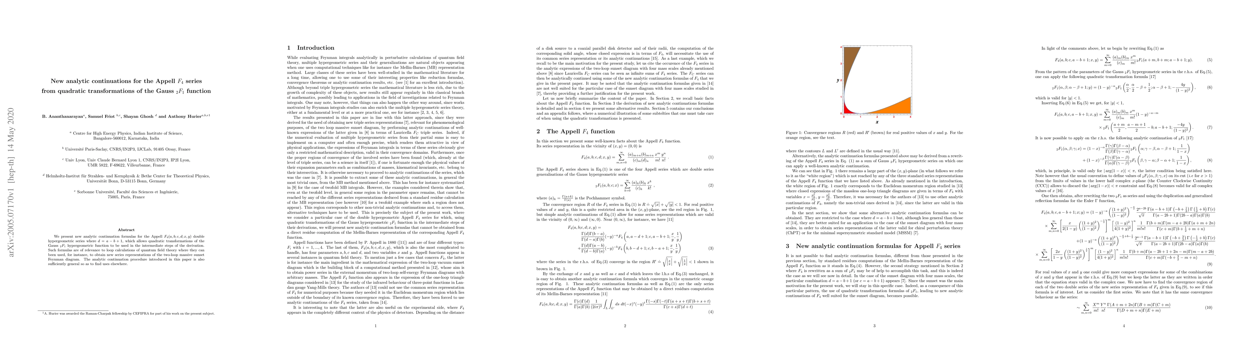 New formulas for the Appell $F_4$ series are introduced using quadratic transformations of the Gauss $_2F_1$ function, relevant to loop calculations in quantum field theory.