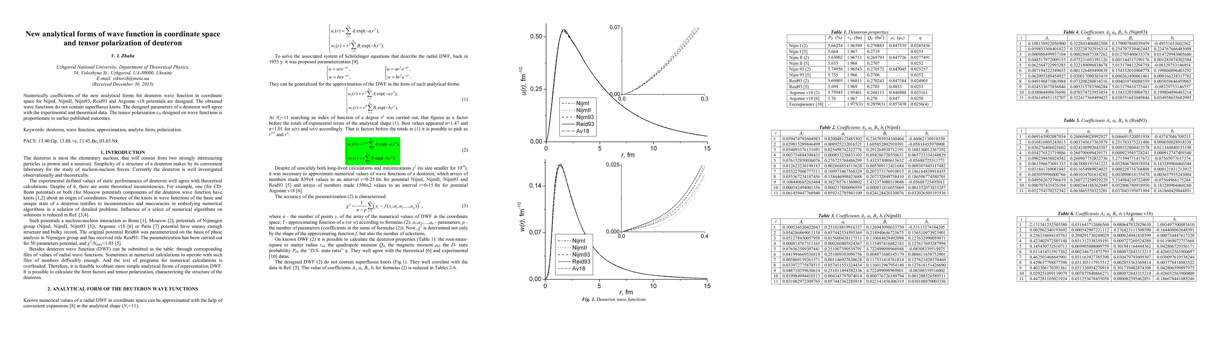 This paper introduces new analytical forms for deuteron wave functions in coordinate space, designed for various potentials, which avoid unnecessary knots and align well with experimental and theoretical data. Additionally, it presents tensor polarization t20 that correlates with previously published results.