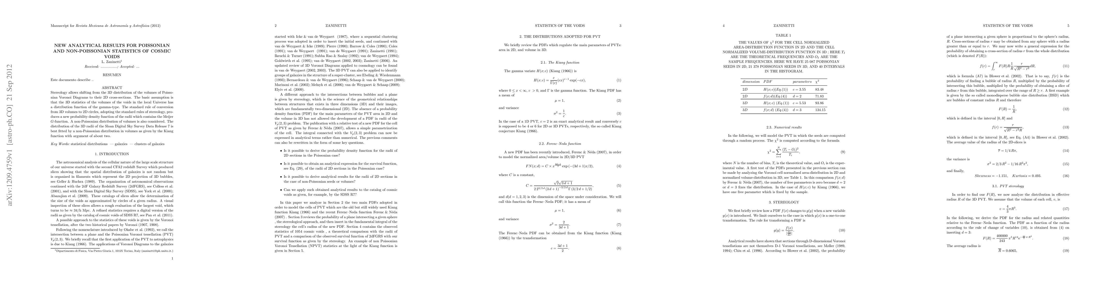 Stereology allows shifting from the 3D distribution of the volumes of Poissonian Voronoi Diagrams to their 2D cross-sections. The basic assumption is that the 3D statistics of the volumes of the voids in the local Universe has a distribution function of the gamma-type. The standard rule of conversion from 3D volumes to 2D circles, adopting the standard rules of stereology, produces a new probability density function of the radii which contains the Meijer $G$-function. A non-Poissonian distribution of volumes is also considered. The distribution of the 3D radii of the Sloan Digital Sky Survey Data Release 7 is best fitted by a non-Poissonian distribution in volumes as given by the Kiang function with argument of about two.