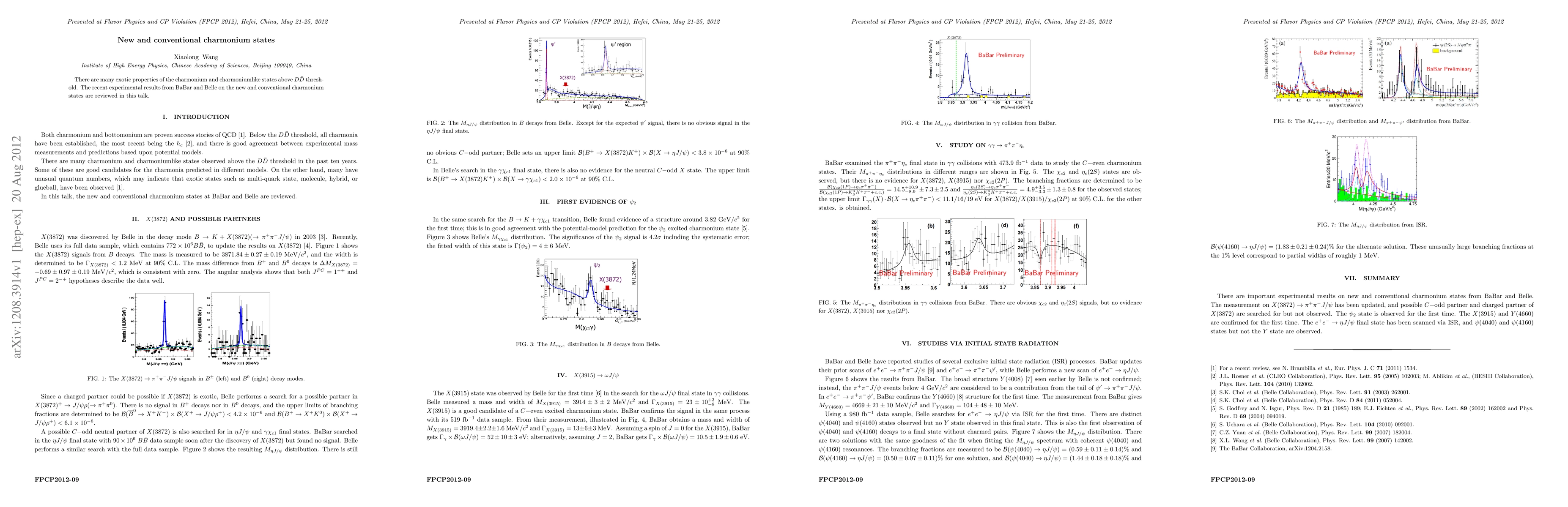 There are many exotic properties of the charmonium and charmoniumlike states above $D\bar{D}$ threshold. The recent experimental results from BaBar and Belle on the new and conventional charmonium states are reviewed in this talk.