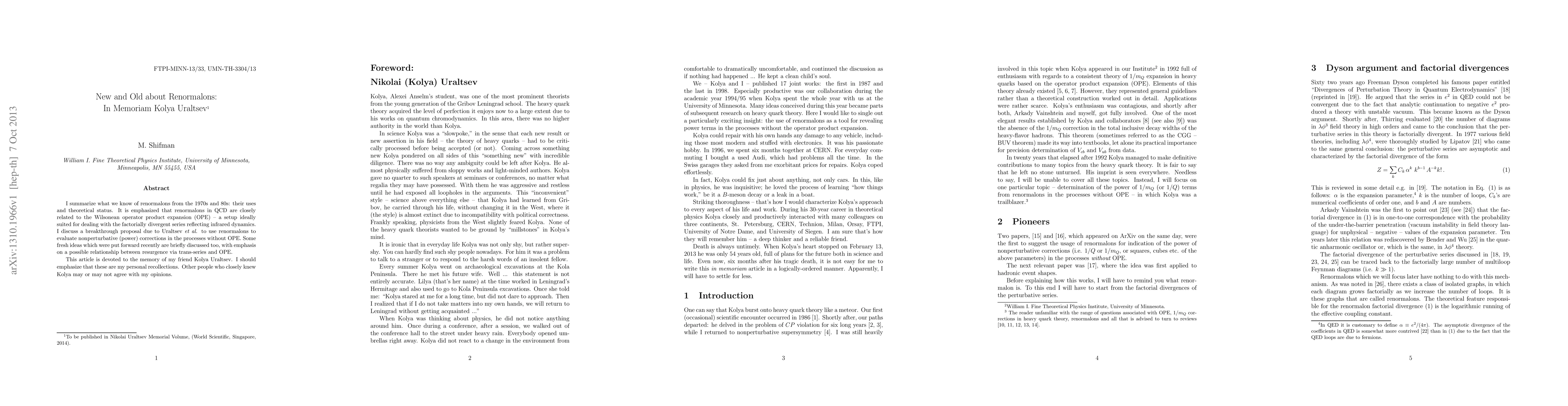 This paper reviews the historical understanding of renormalons, particularly in QCD, and their connection to the Wilsonean operator product expansion. It highlights a significant proposal by Uraltsev et al. for evaluating nonperturbative corrections and briefly mentions recent ideas linking resurgence and trans-series to OPE. The article is dedicated to the memory of Kolya Uraltsev, reflecting on personal recollections.