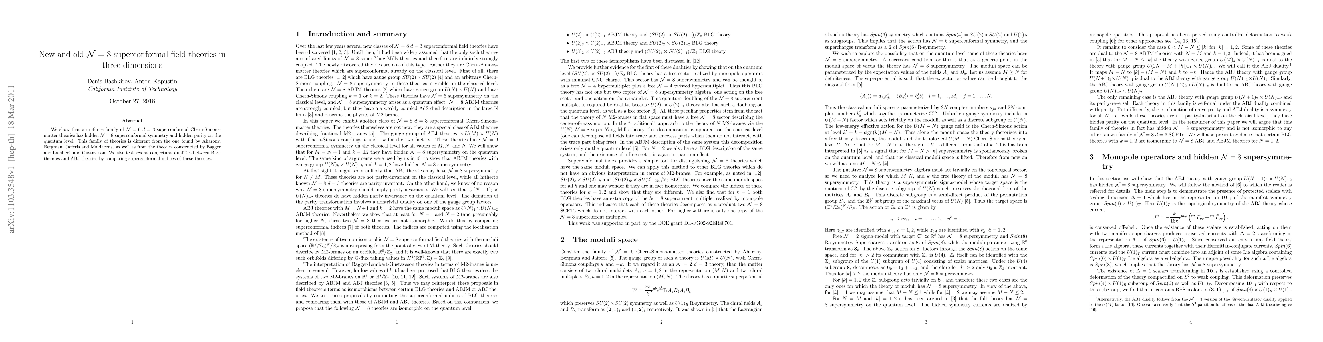 We show that an infinite family of N=6 d=3 superconformal Chern-Simons-matter theories has hidden N=8 superconformal symmetry and hidden parity on the quantum level. This family of theories is different from the one found by Aharony, Bergman, Jafferis and Maldacena, as well as from the theories constructed by Bagger and Lambert, and Gustavsson. We also test several conjectural dualities between BLG theories and ABJ theories by comparing superconformal indices of these theories.