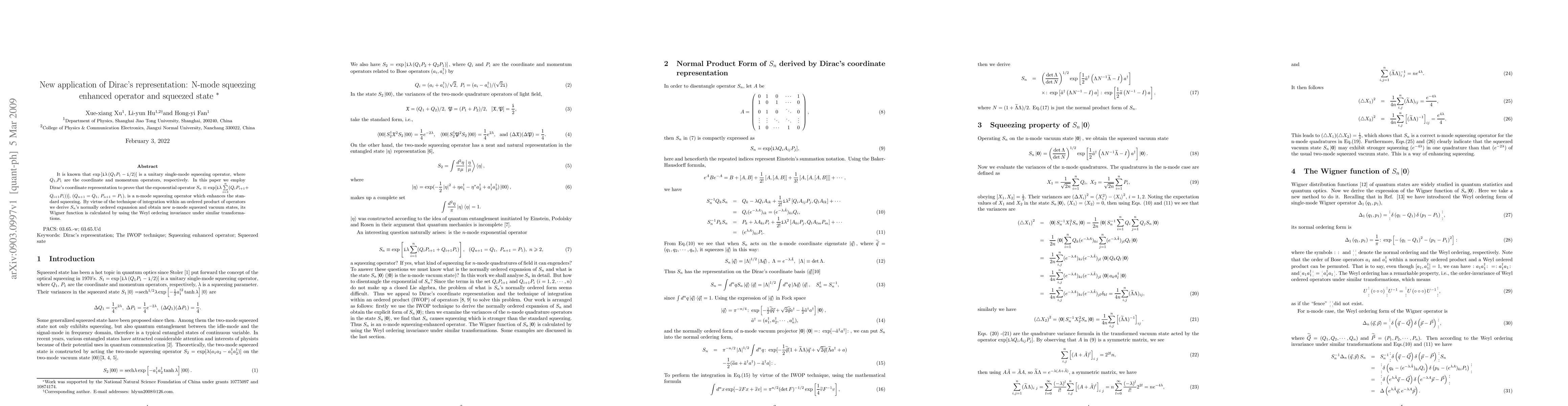 This paper utilizes Dirac's coordinate representation to demonstrate that the operator \( S_{n} \) is an n-mode squeezing operator that enhances standard squeezing, deriving new n-mode squeezed vacuum states and calculating their Wigner function.