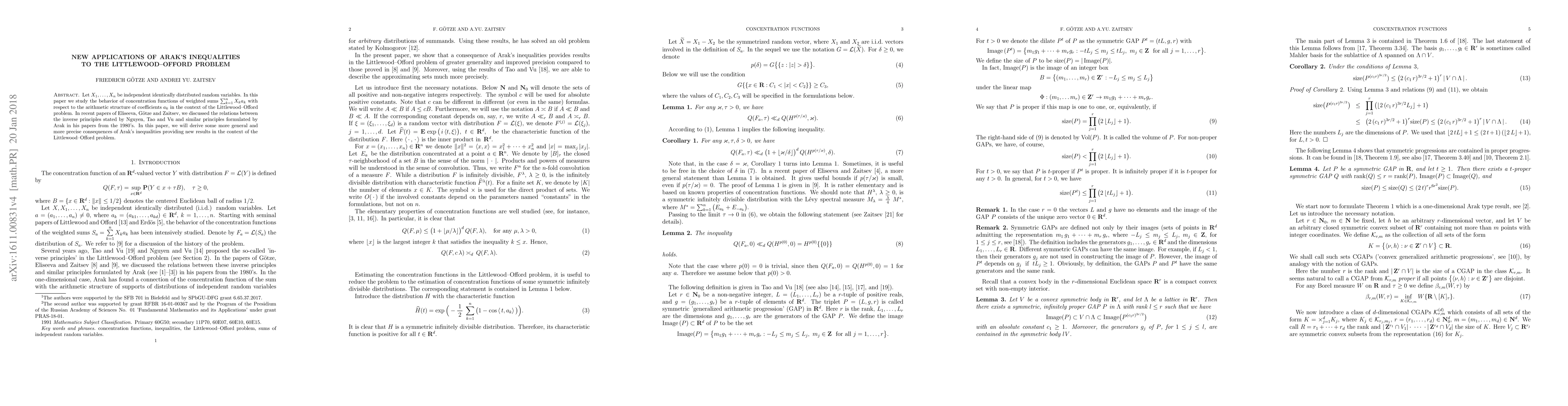 This paper applies Arak's inequalities to the Littlewood-Offord problem, deriving new results on weighted sums with respect to arithmetic structures of coefficients. It builds on previous work connecting inverse principles in random matrix theory.