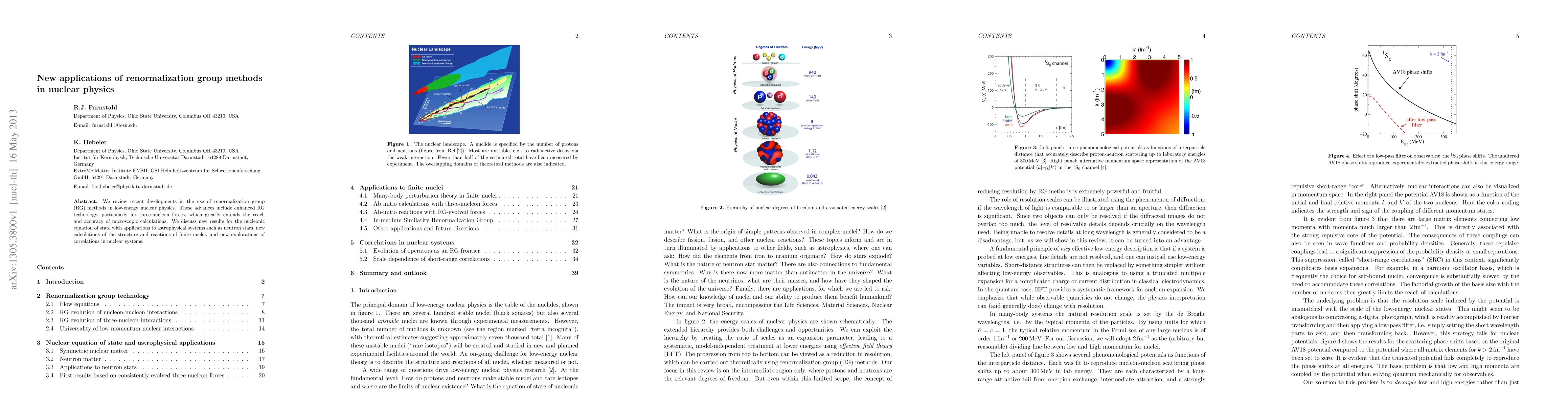 We review recent developments in the use of renormalization group (RG) methods in low-energy nuclear physics. These advances include enhanced RG technology, particularly for three-nucleon forces, which greatly extends the reach and accuracy of microscopic calculations. We discuss new results for the nucleonic equation of state with applications to astrophysical systems such as neutron stars, new calculations of the structure and reactions of finite nuclei, and new explorations of correlations in nuclear systems.