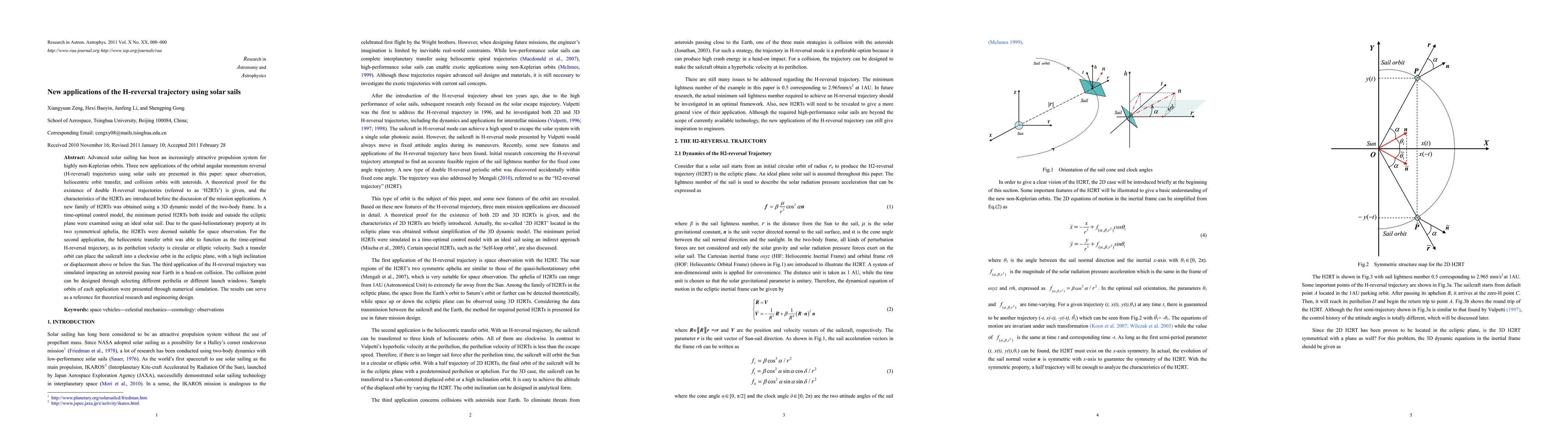 This paper introduces three new applications of H-reversal trajectories using solar sails: space observation, heliocentric orbit transfer, and asteroid collision. It presents theoretical proof and characteristics of double H-reversal trajectories, demonstrating their potential through numerical simulations and time-optimal control models.