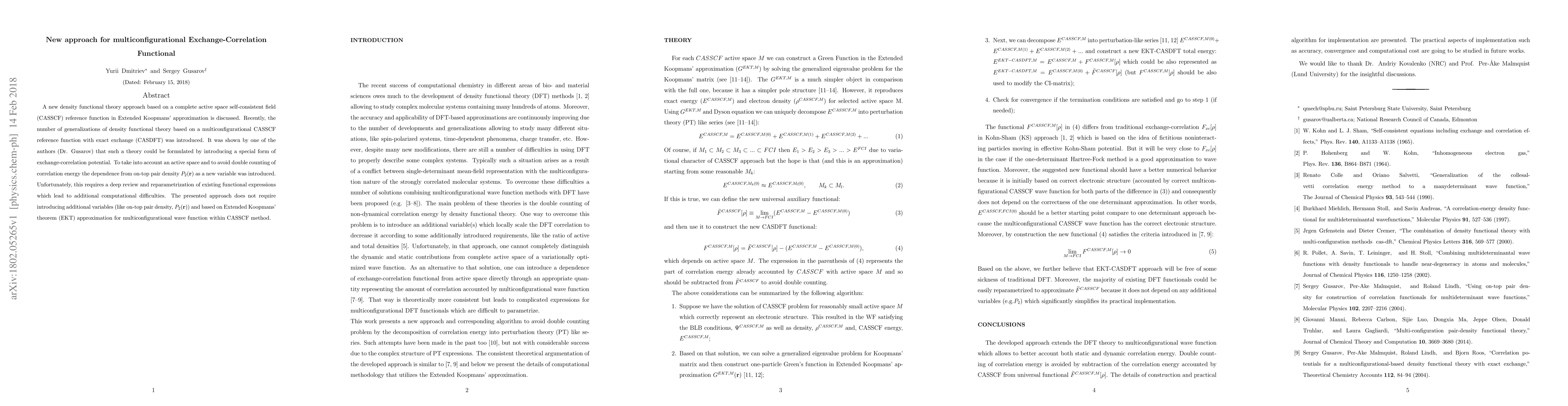This research extends DFT theory to multiconfigurational wavefunction, allowing for better accounting of both static and dynamic correlation energy